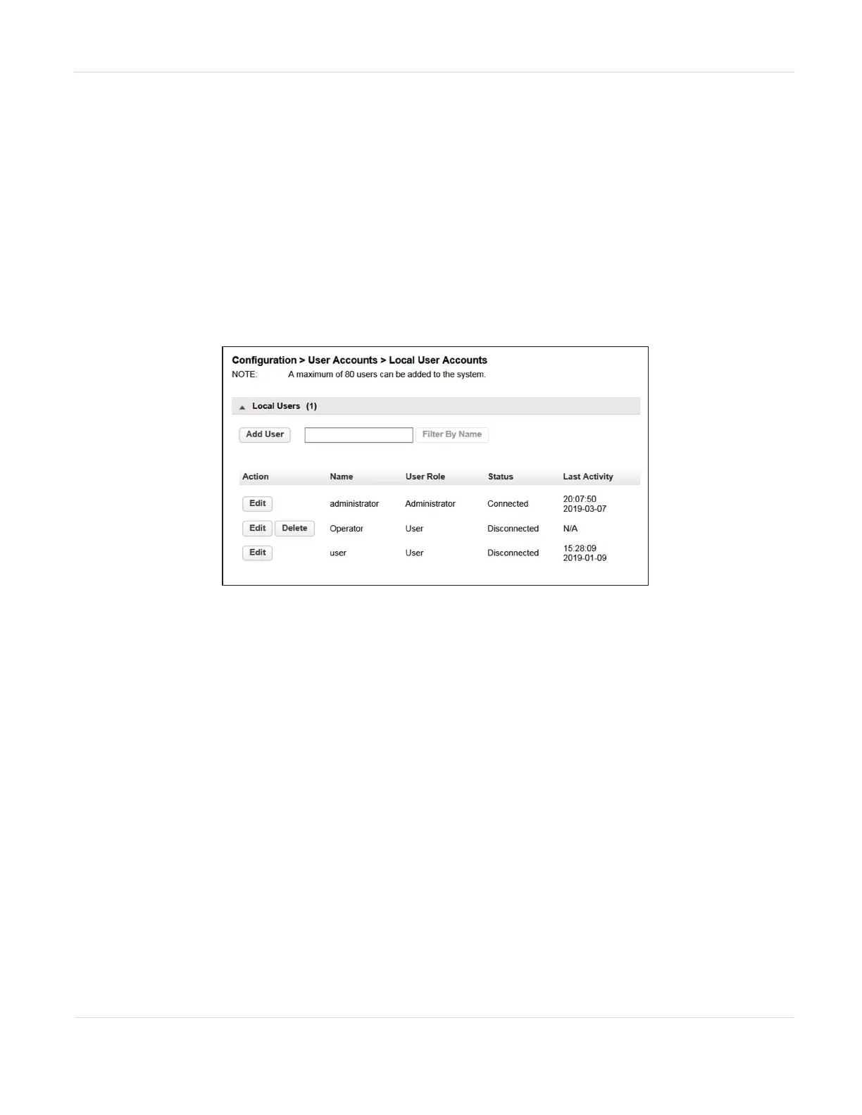 From the Configuration > User Accounts > Local User Accounts screen you can add