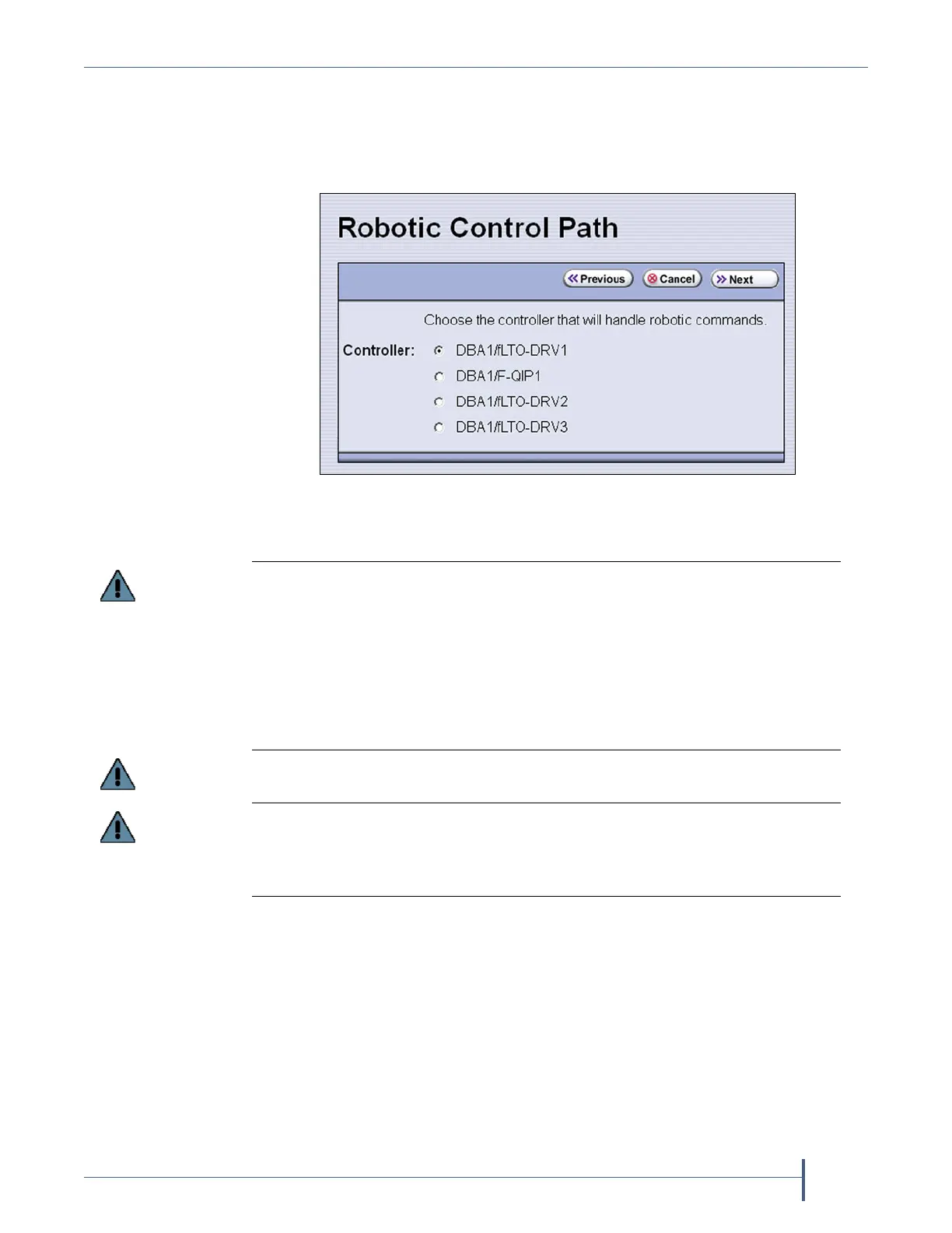 Do not select more than one drive to provide the robotic control path unless you