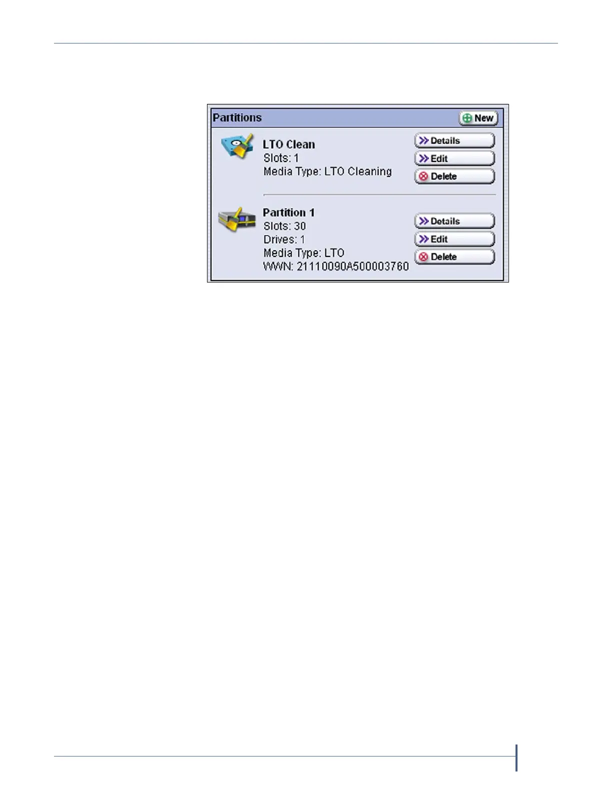 Figure 121 The Partitions screen showing a cleaning