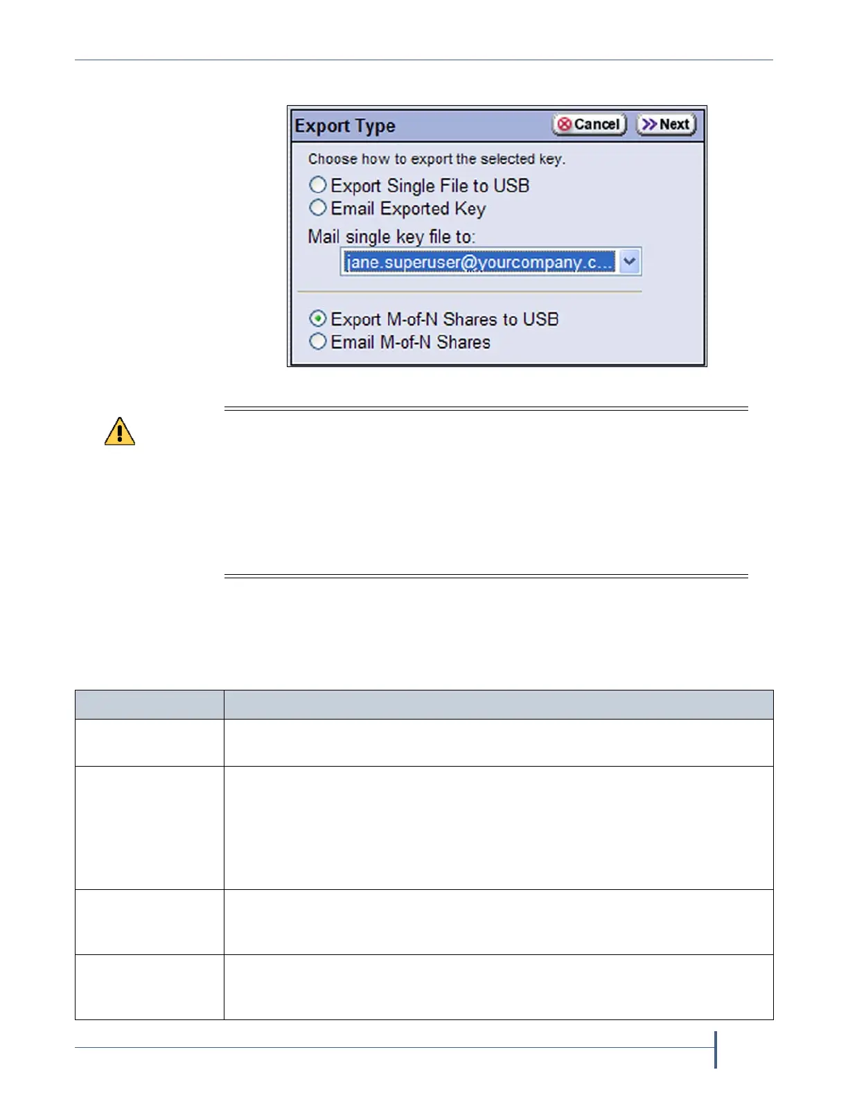 Figure 203 Choose the method for exporting the key.