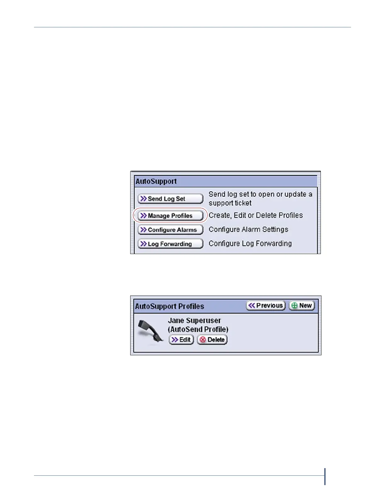 3. ClickManage Profiles.TheAutoSupportProfilesscreendisplays.