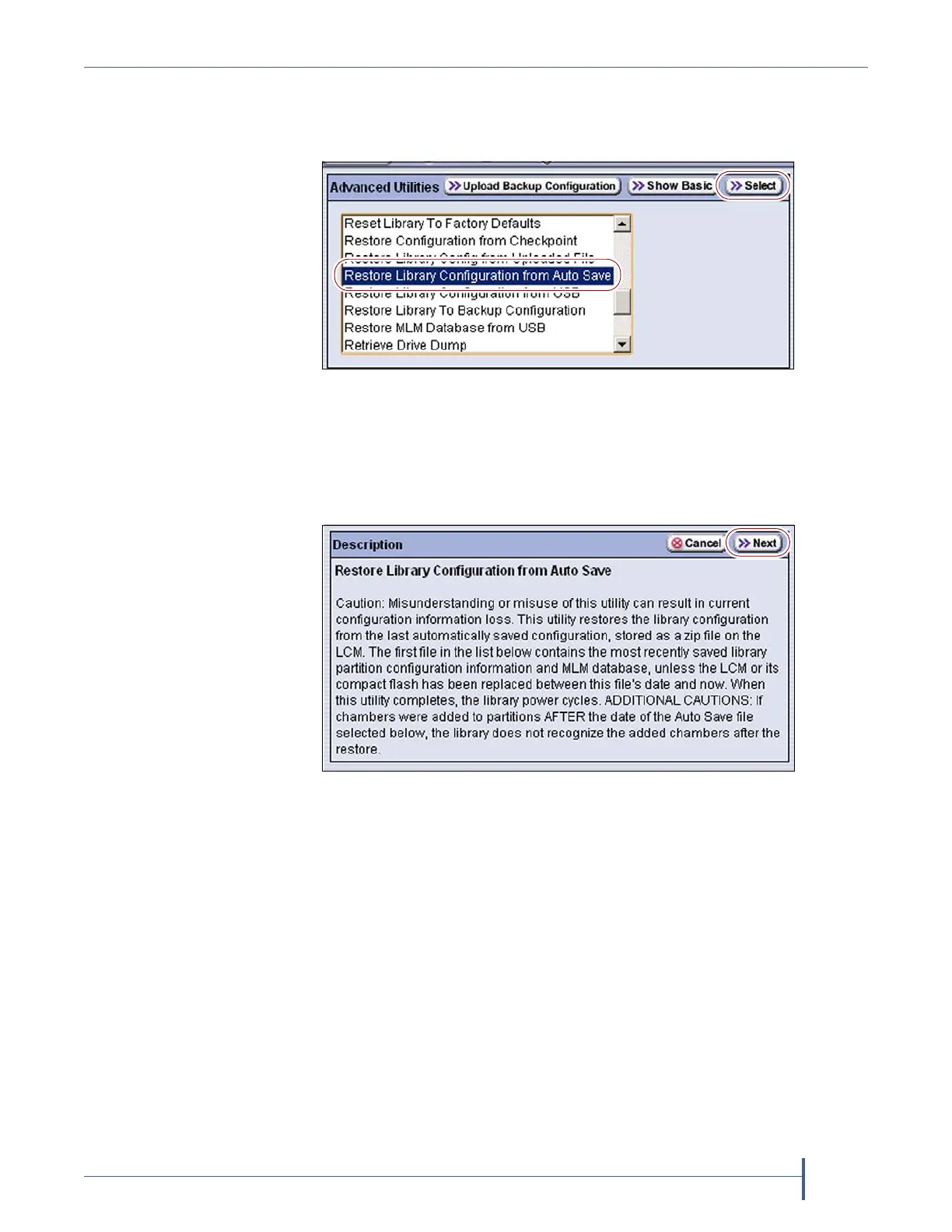 Figure 253 Select Restore Library Configuration from Auto