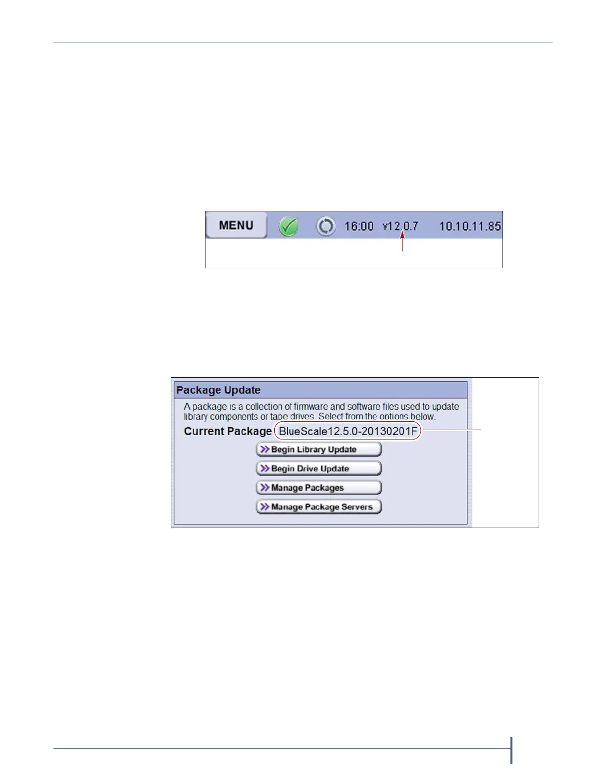 Figure 286 The BlueScale version shown on the Package Update screen.