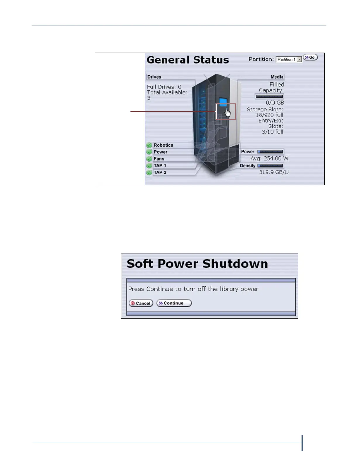Figure 94 The Soft Power button on the General Status screen.