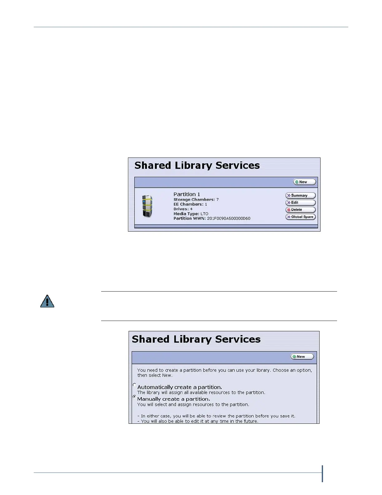 Ifthelibrarydoesnotcurrentlyhaveanypartitionsconfigured,
