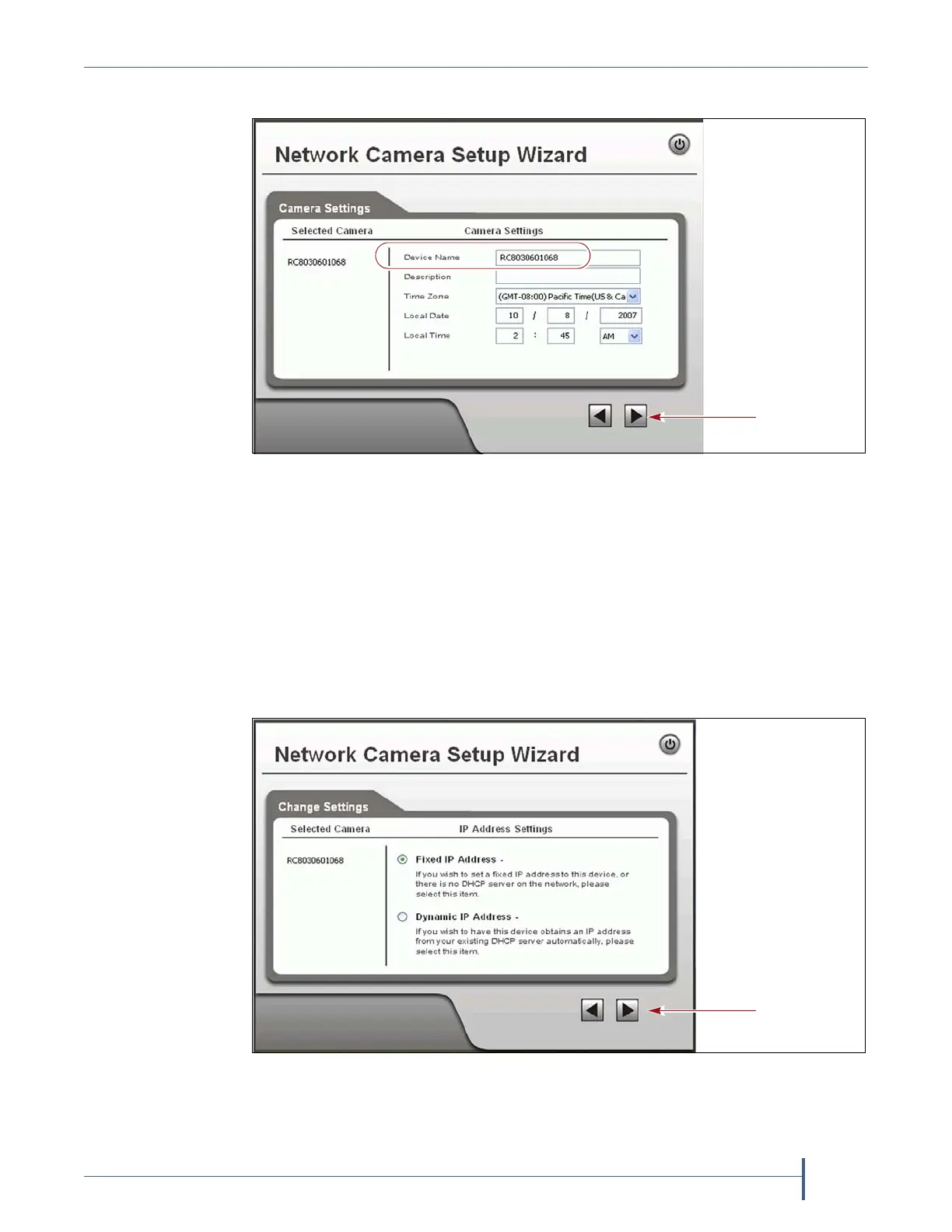 6. ClicktheforwardarrowtodisplaytheCameraSettingsscreen.