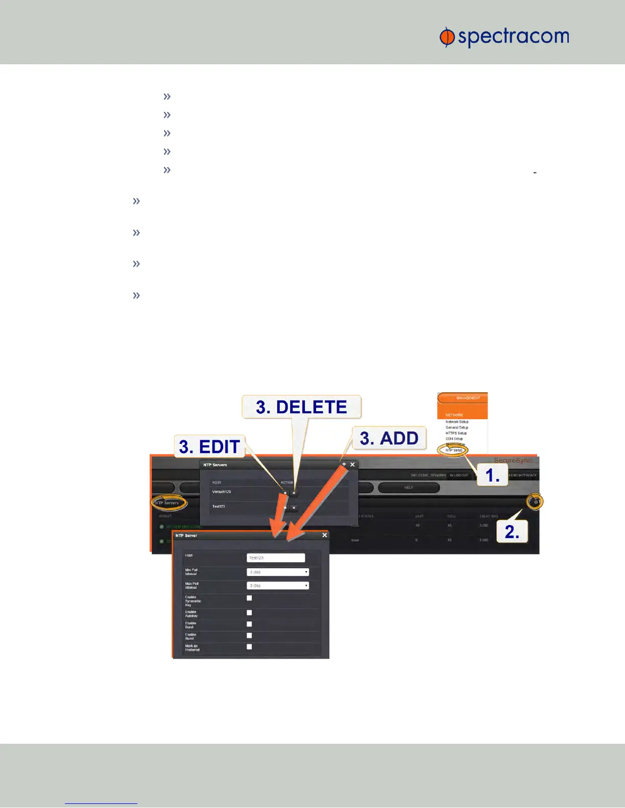 Navigate to MANAGEMENT > NETWORK: NTP Setup.