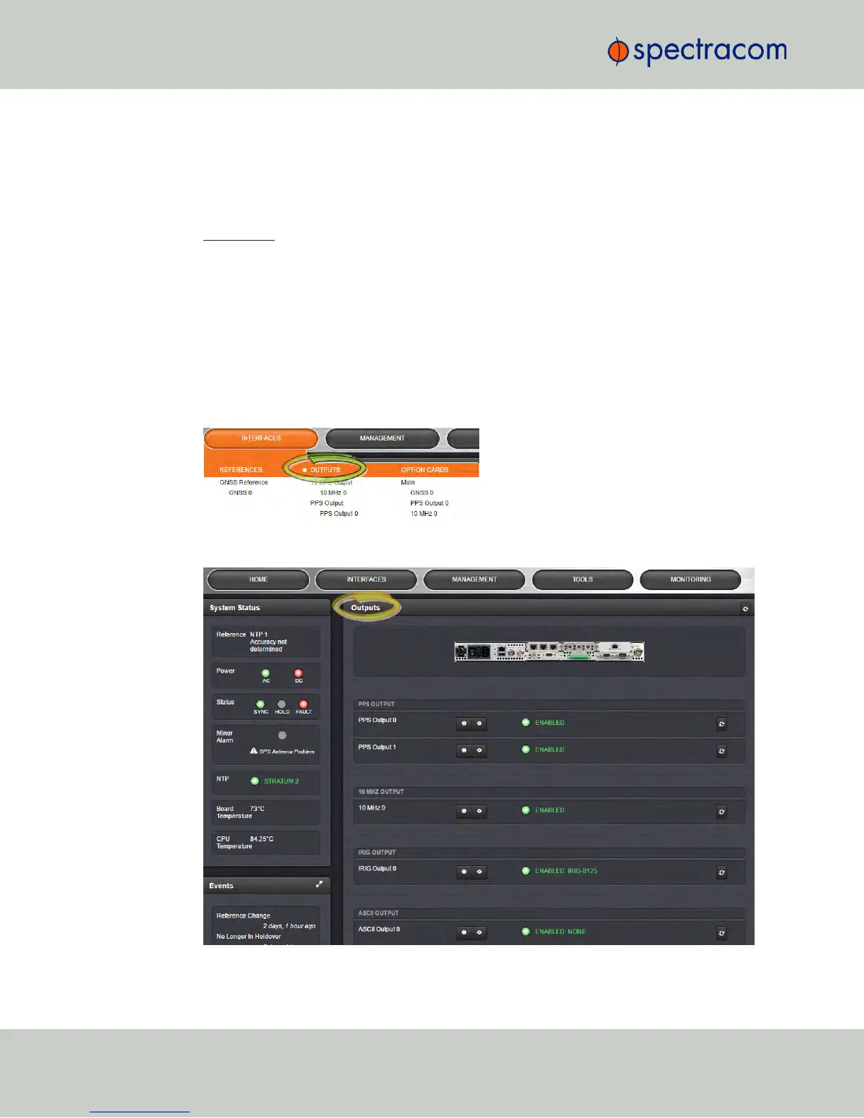 To access the Outputs screen in the Web UI: