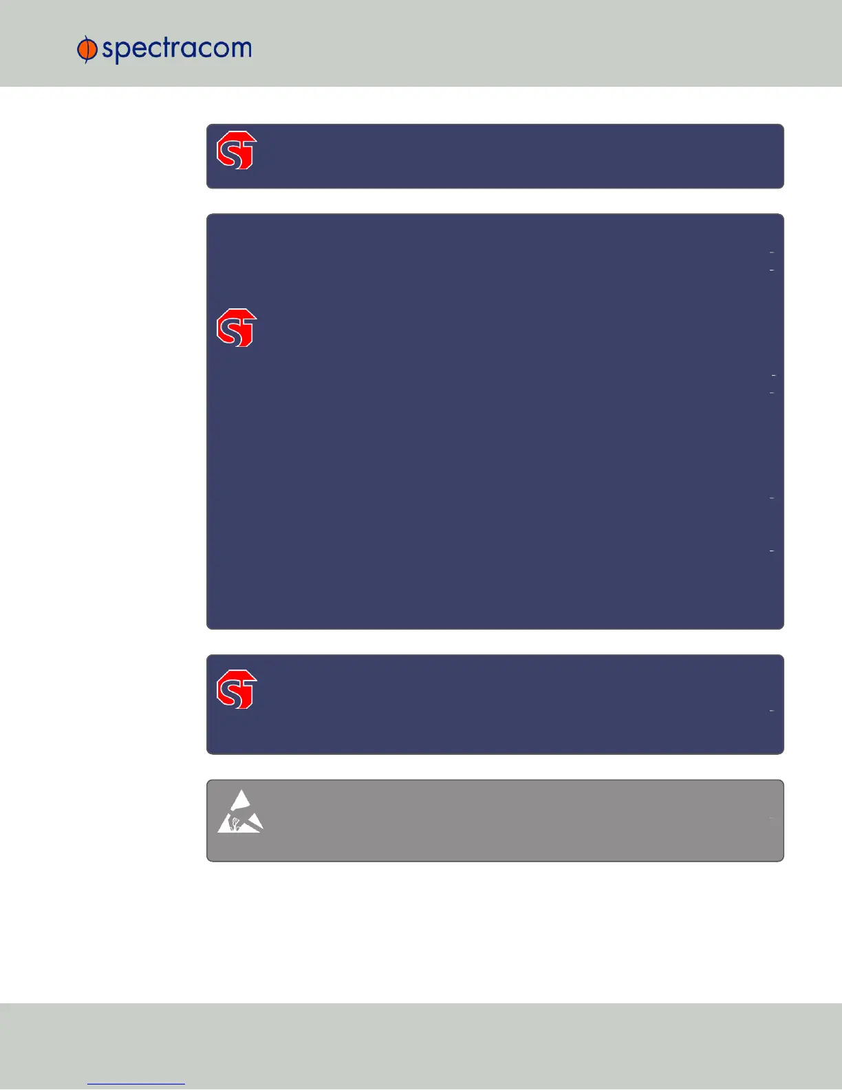 Observe all ESD precautions and safeguards when handling Spectracom equip