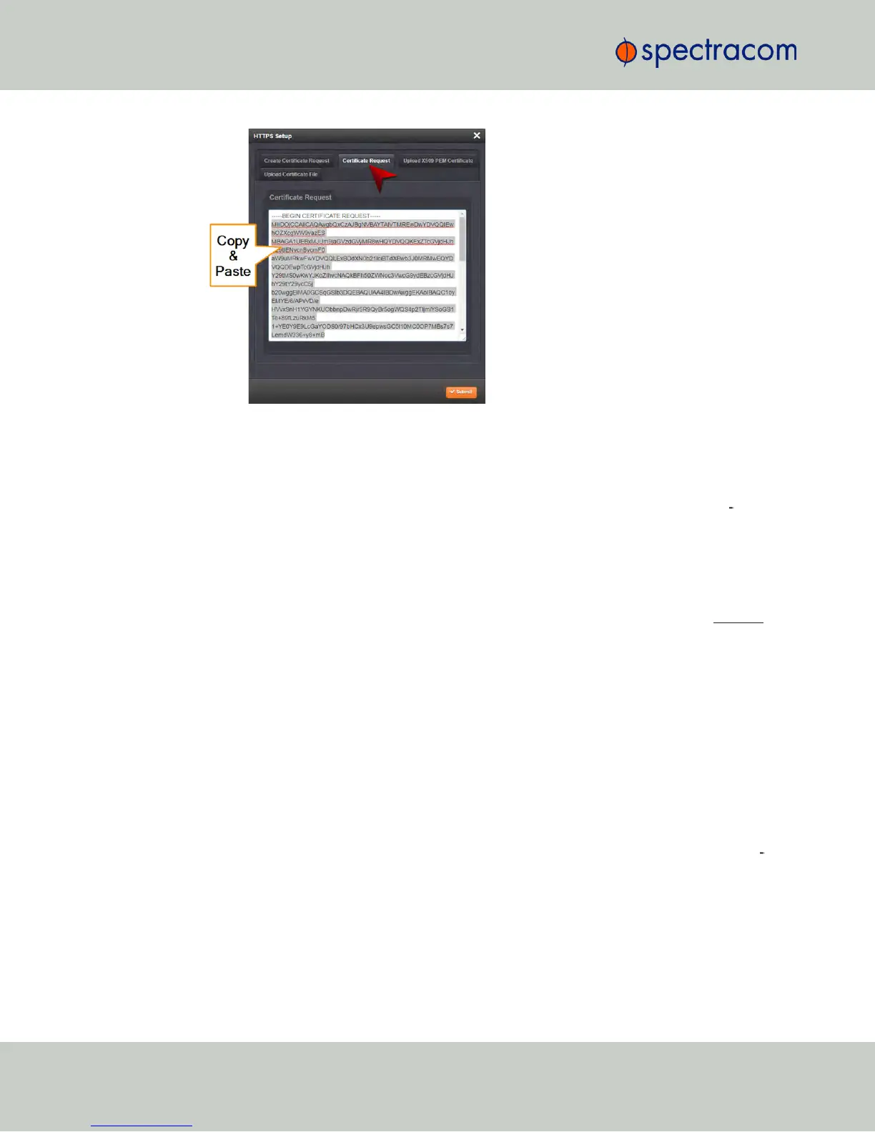 Copy the generated Certificate Request from the Certificate Request window, and paste
