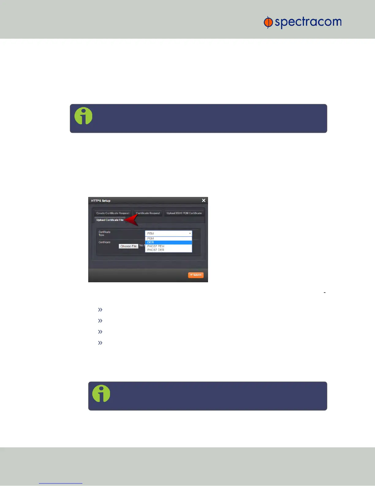 Note: For more information about Certificate formats, see "Supported Certificate