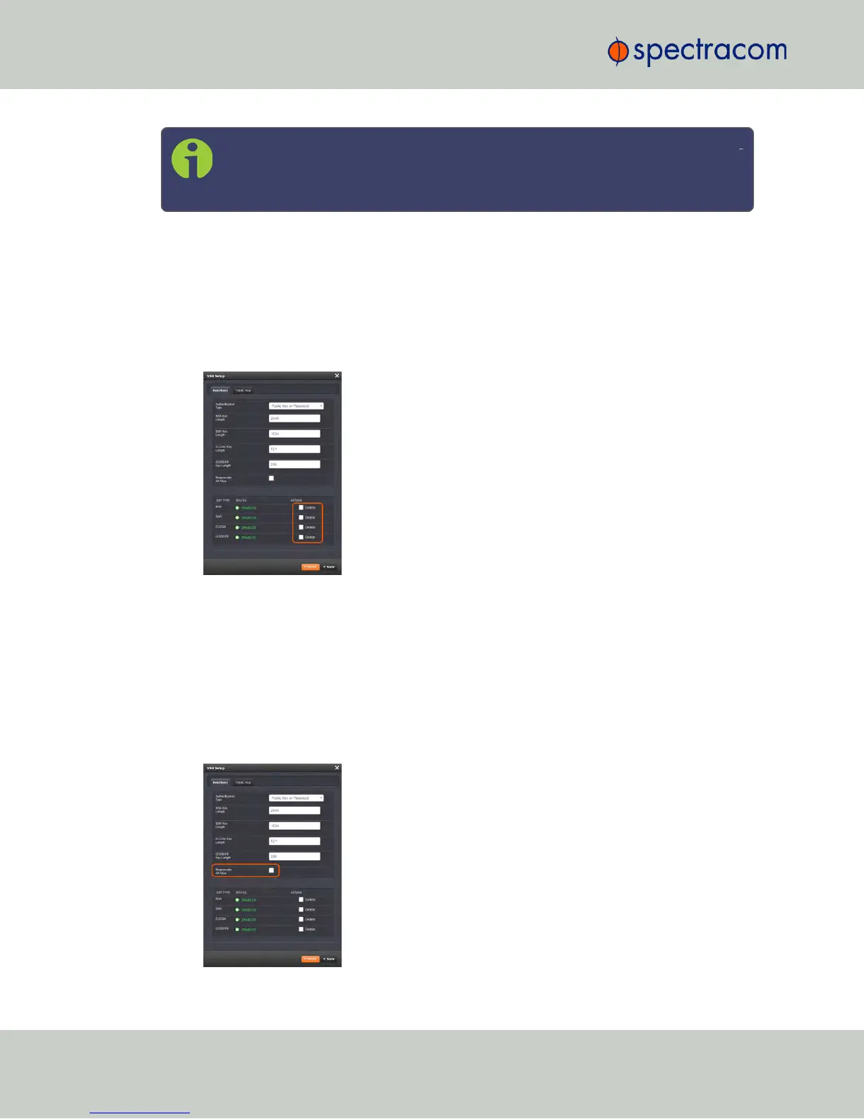 new Host Keys can be created. To create a new set of host keys: