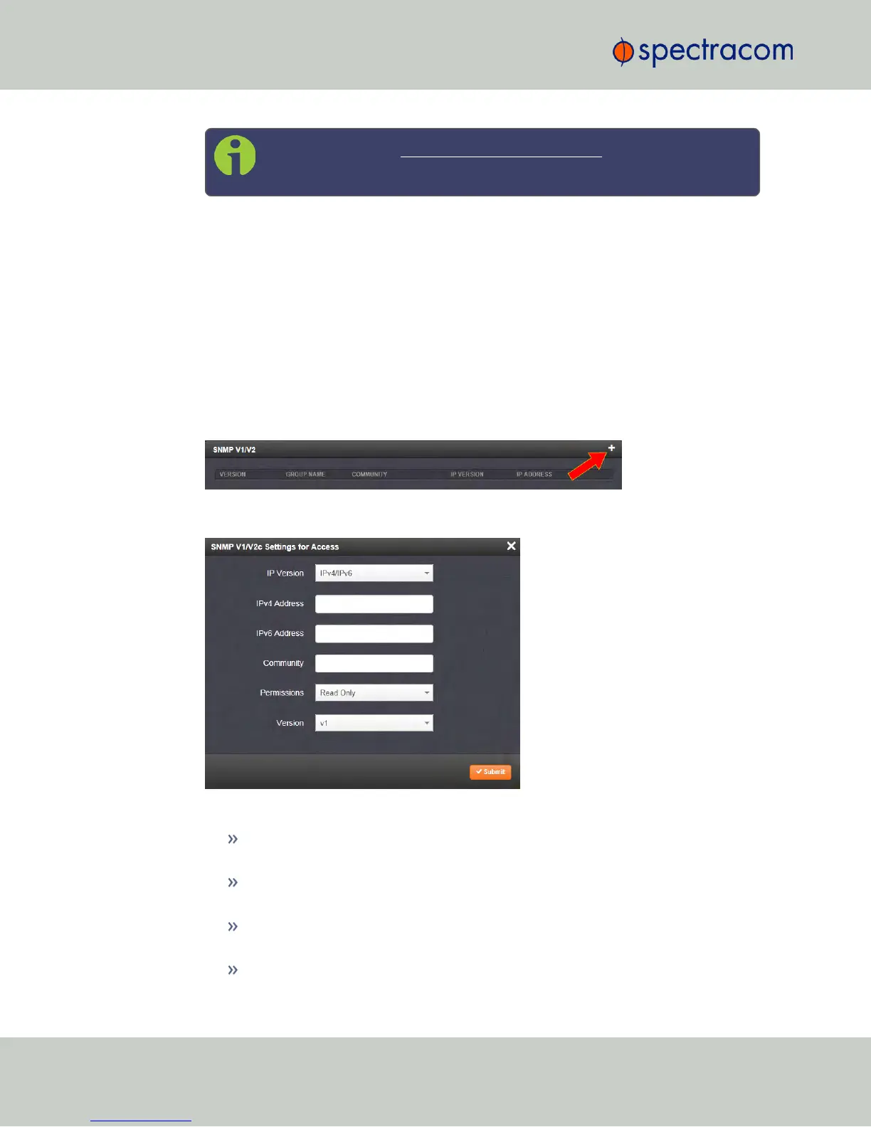 The SNMP V1/V2c Settings for Access window will display: