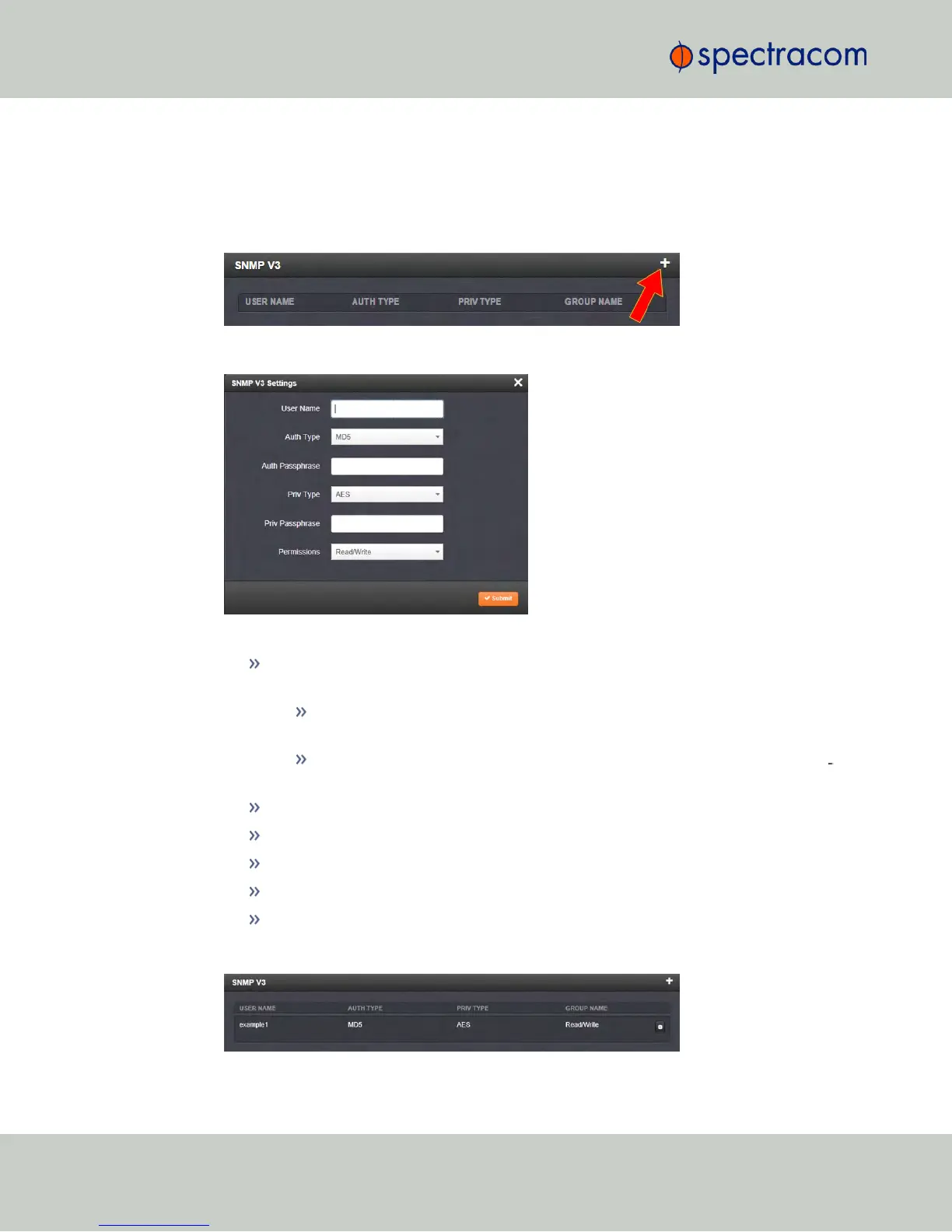 Click Submit. The created user will appear in the SNMP V3 panel: