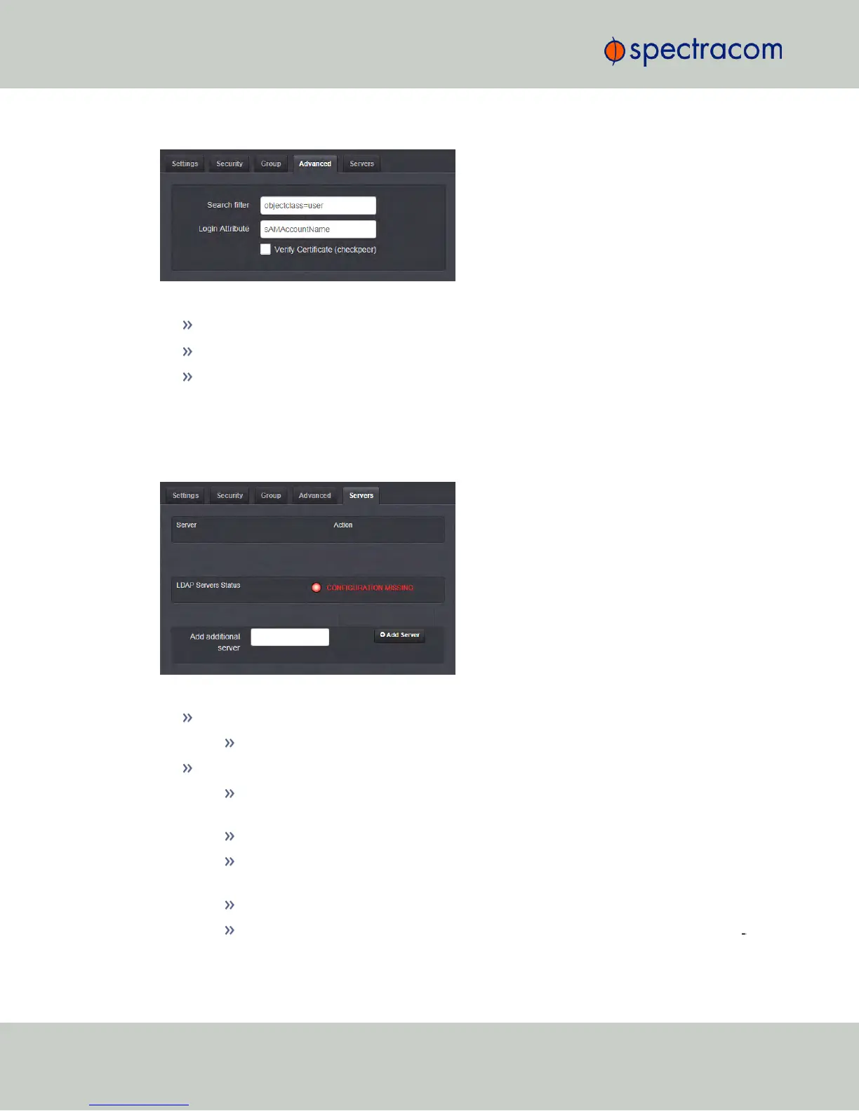 Under the Servers tab, you manage the LDAP server(s) to be accessed:
