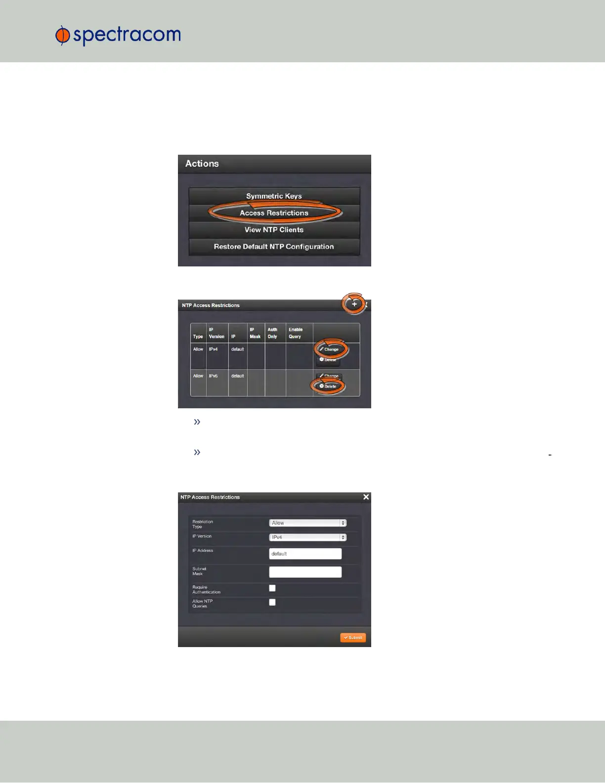 To configure NTP Access Restrictions: