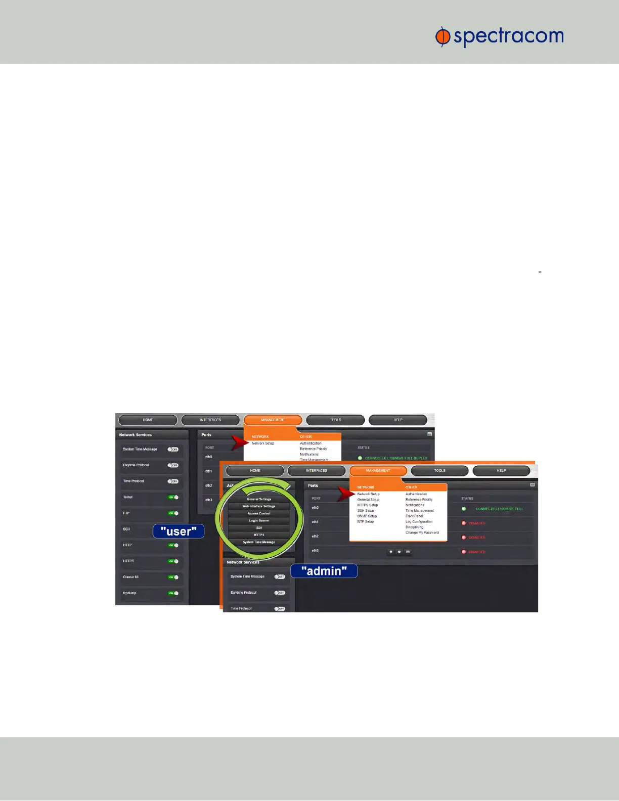 The most significant differences are visible in the MANAGEMENT menu, since most of the Setup