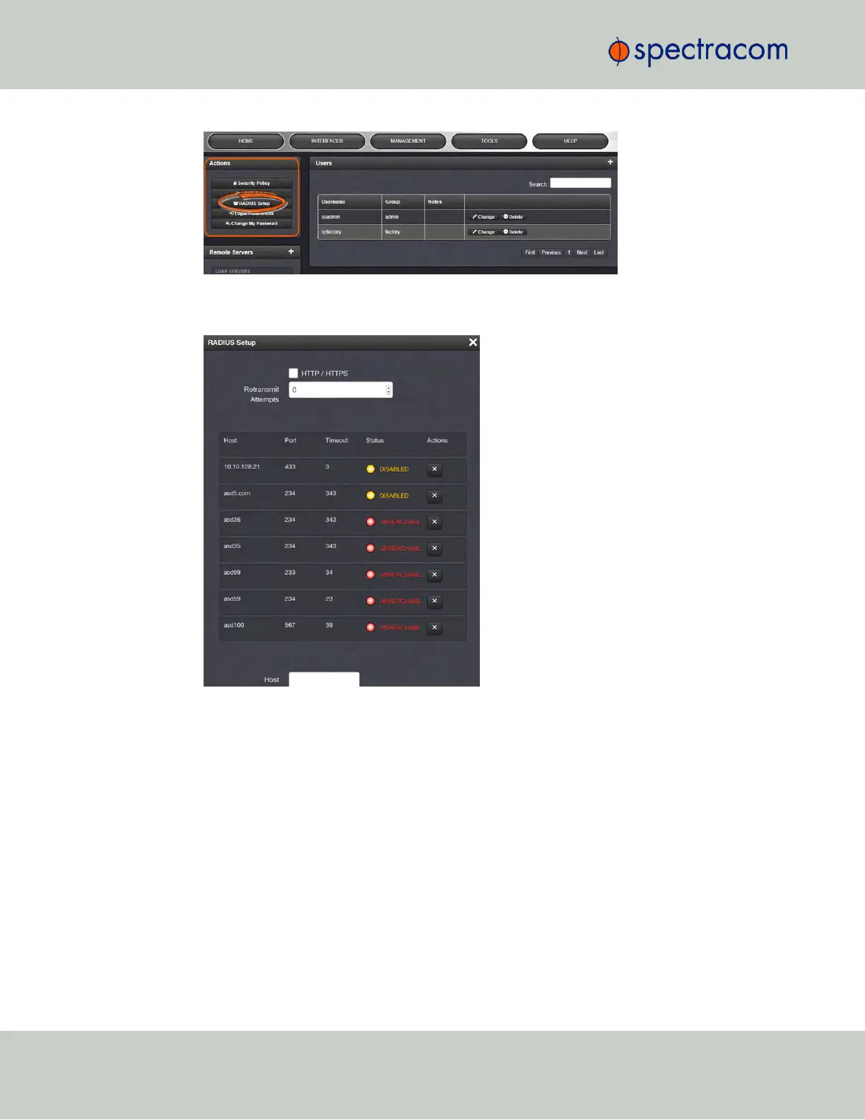 The Radius Setup window will display. Click the X-button next to the RADIUS server you