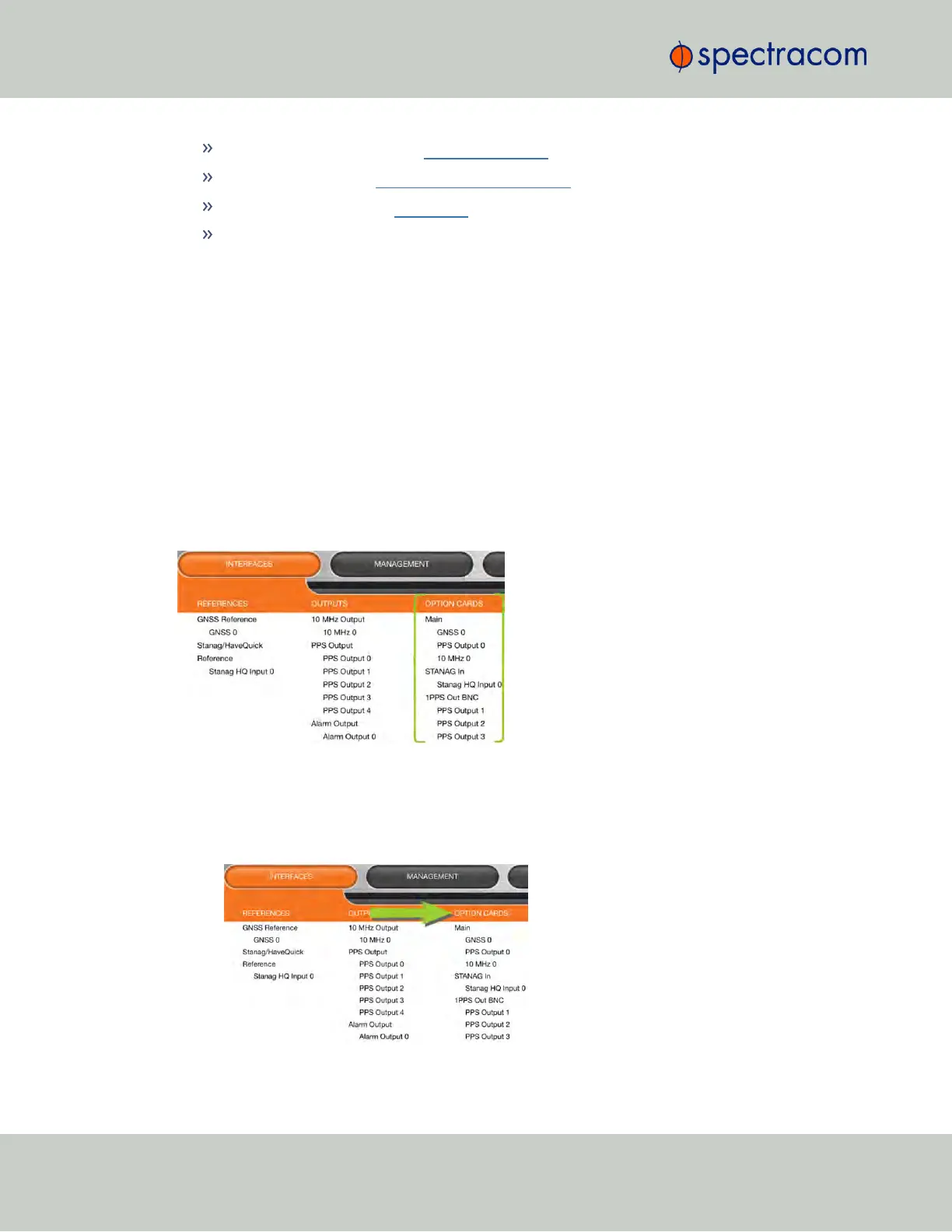 SecureSync’s installed option cards can be monitored in real time through the INTERFACES >