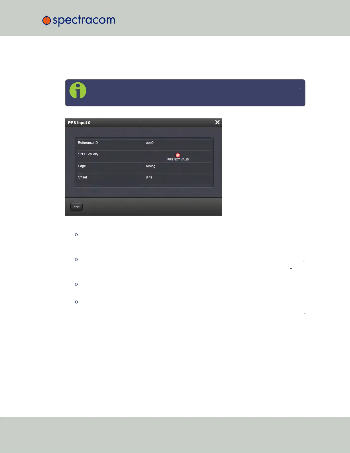 Edge: Displays the selected Edge (rising of falling) of the 1PPS input that defines the on-