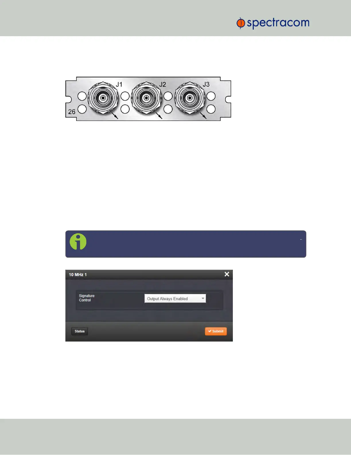 10MHz signal (depending on the card model). All 3 outputs are configured as a single output