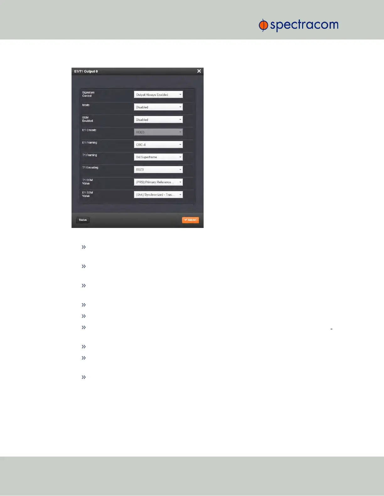 E1 SSM Value: This option selects the SSM quality level transmitted when SSM is