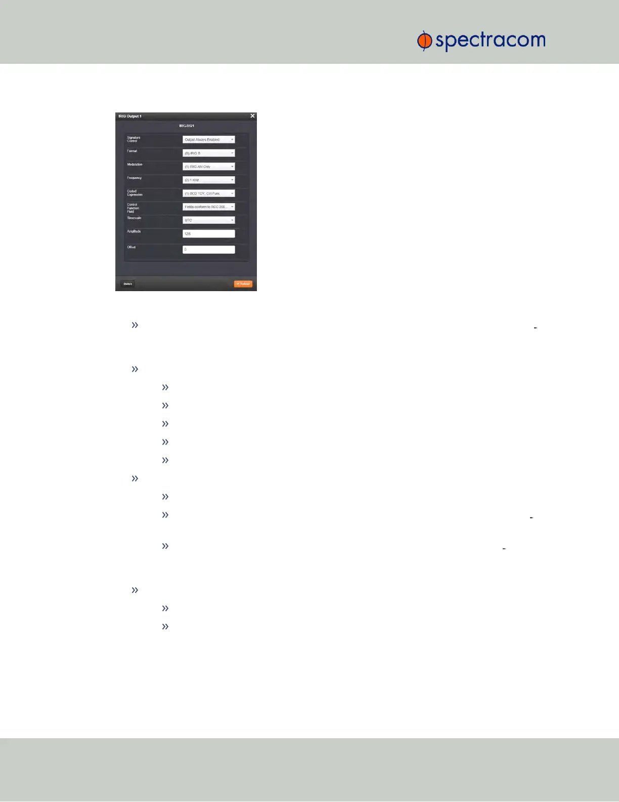 Format: Used to configure the desired IRIG output formatting. The available choices are: