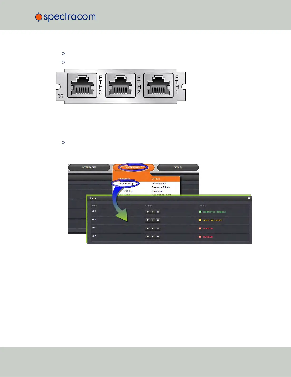 screen, the Ports panel will display the available Ethernet ports, and their connection