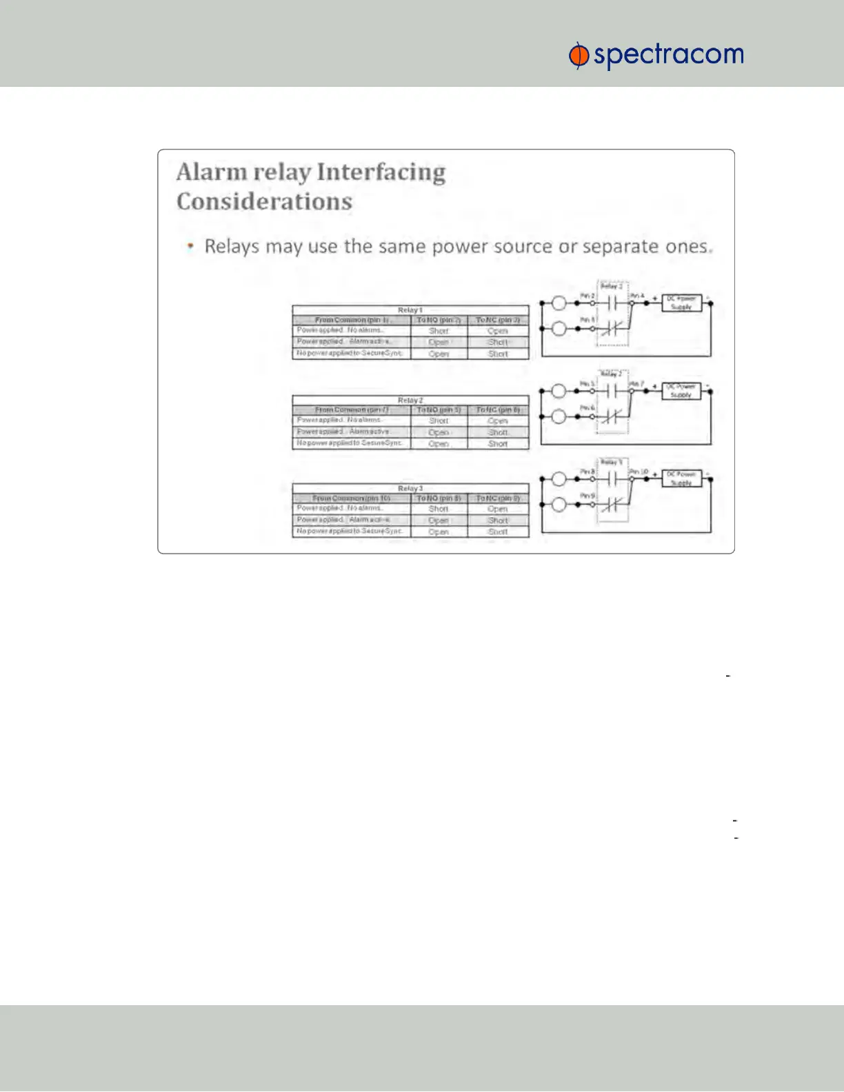 or a Major alarm relay. The three relays are dry contact closures that can either open or com