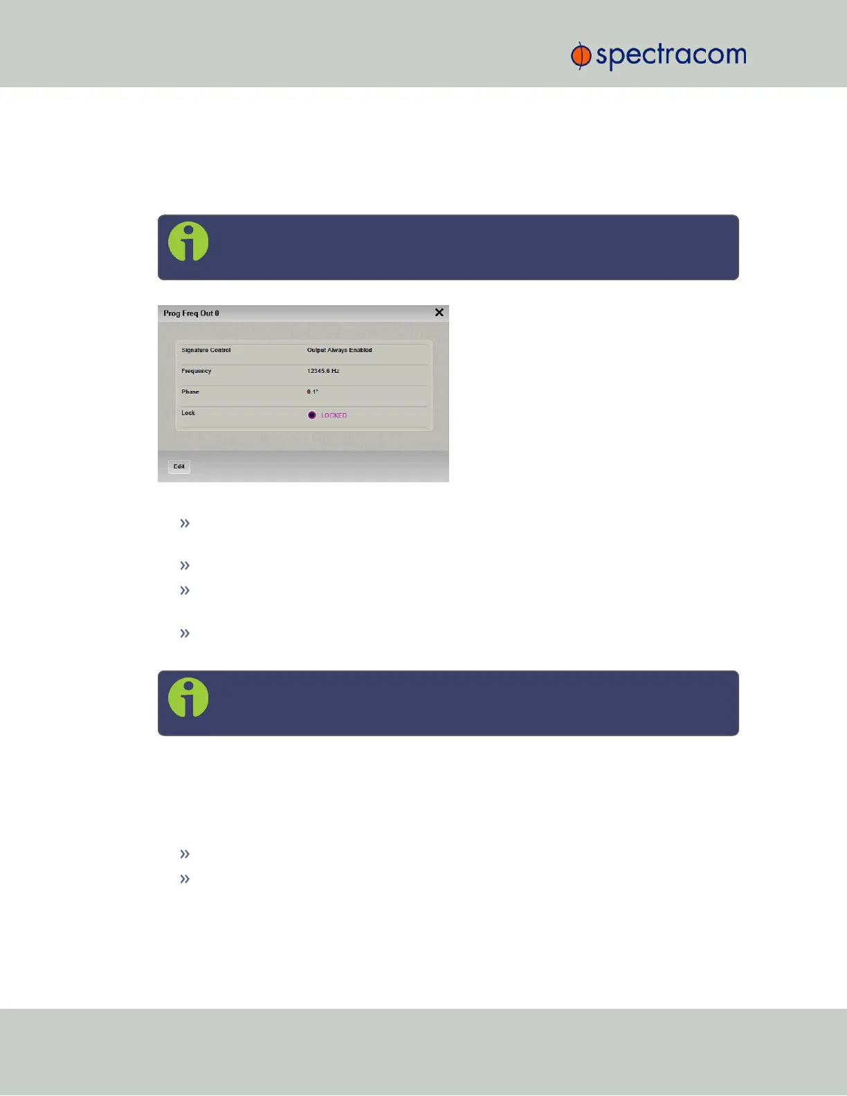 Lock: Shows, if the output frequency is locked to the SecureSync system-disciplined oscil-