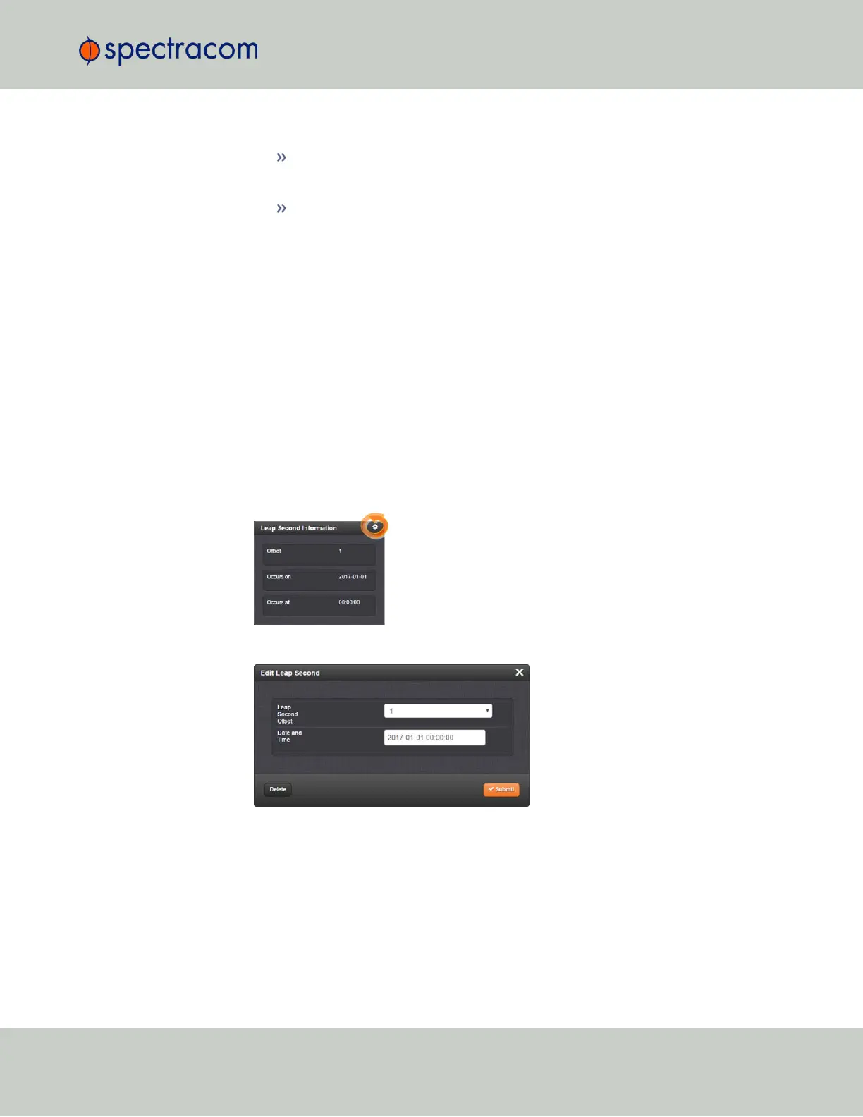 To access the Edit Leap Second information window, click the GEAR icon in the Leap