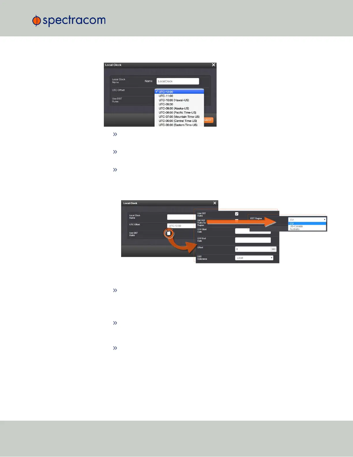 All of the UTC Offset drop-down selections are configured as UTC plus or minus a