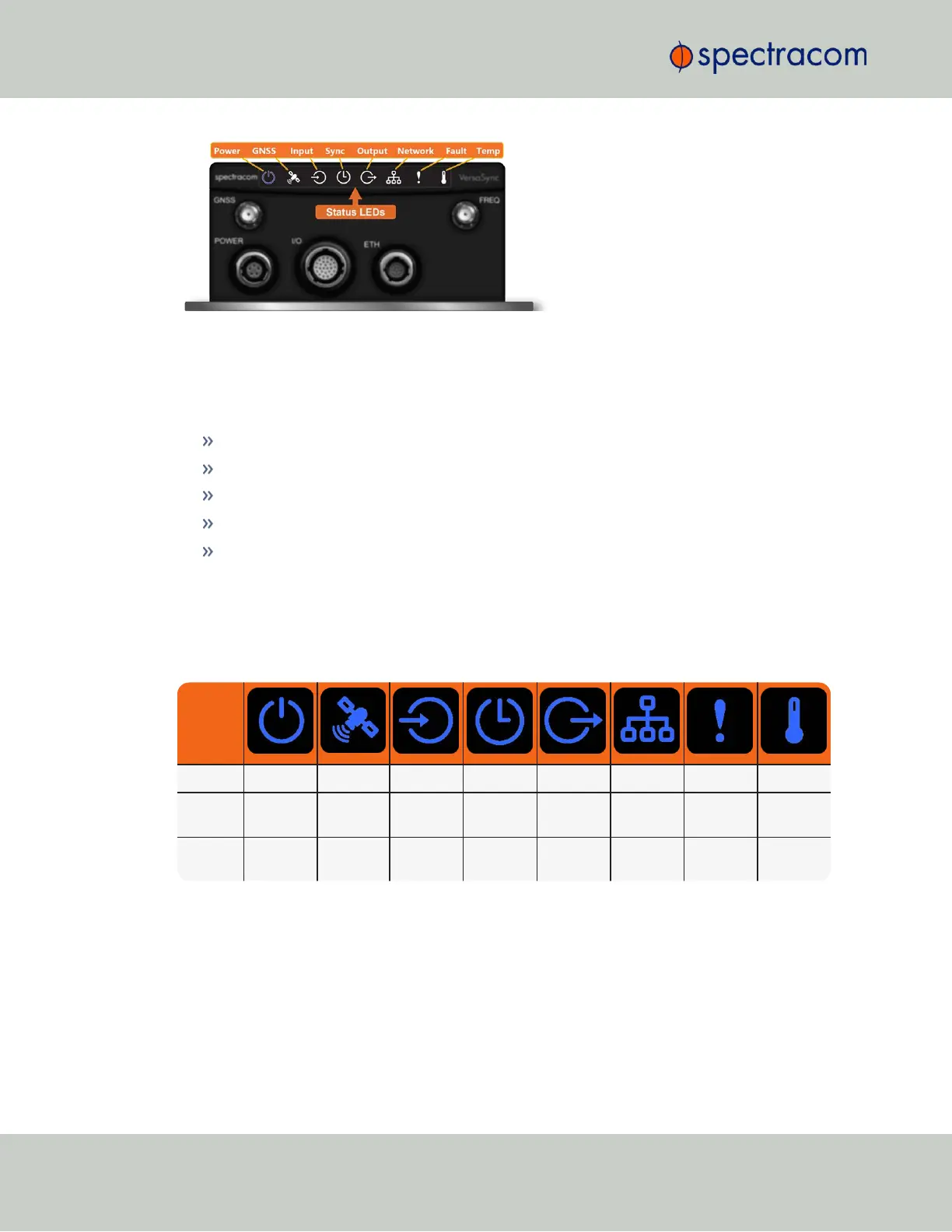 The table below indicates LED status light patterns for common VersaSync operating statuses.