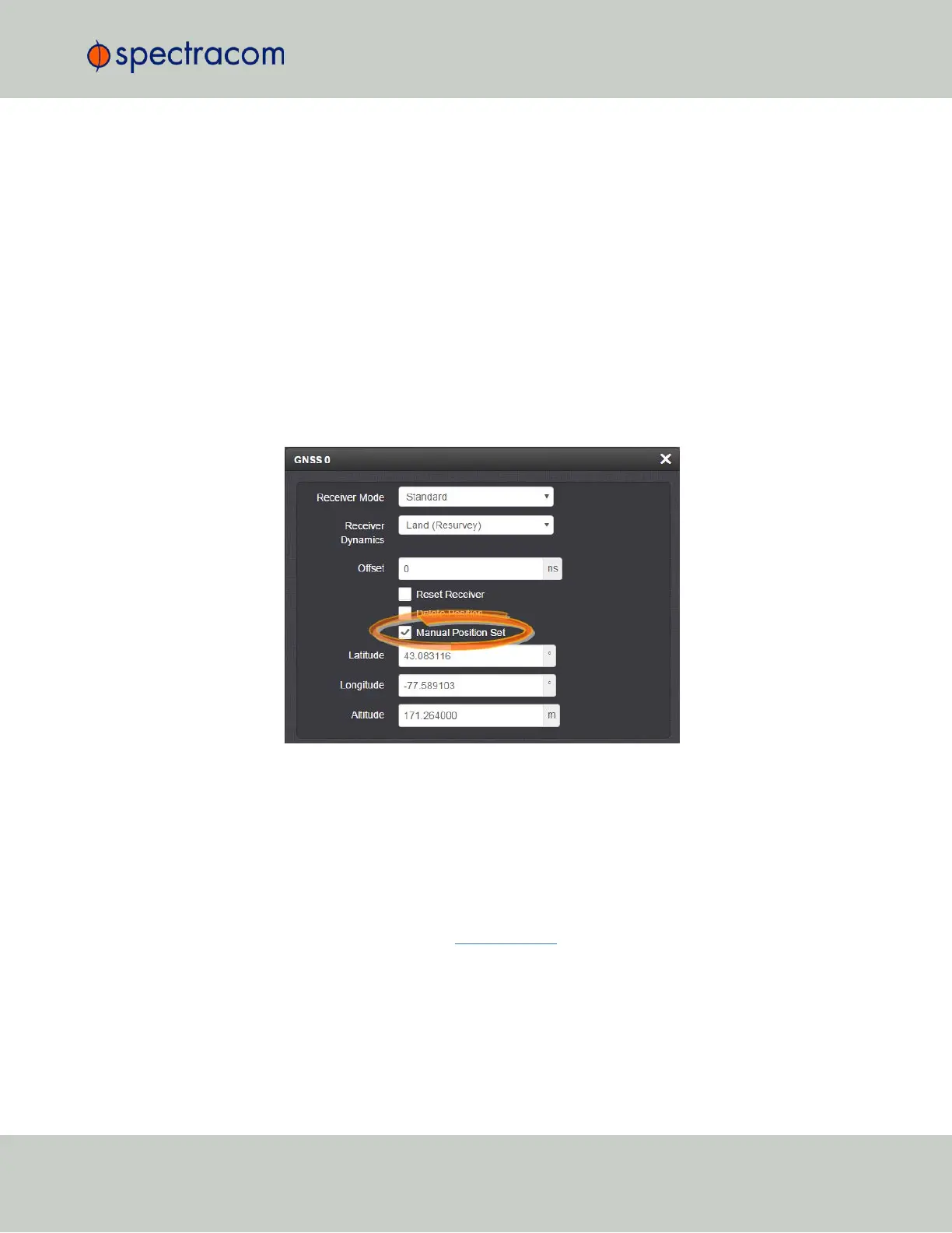 Under Manual Position Set accurately enter latitude, longitude (both in decimal degrees),