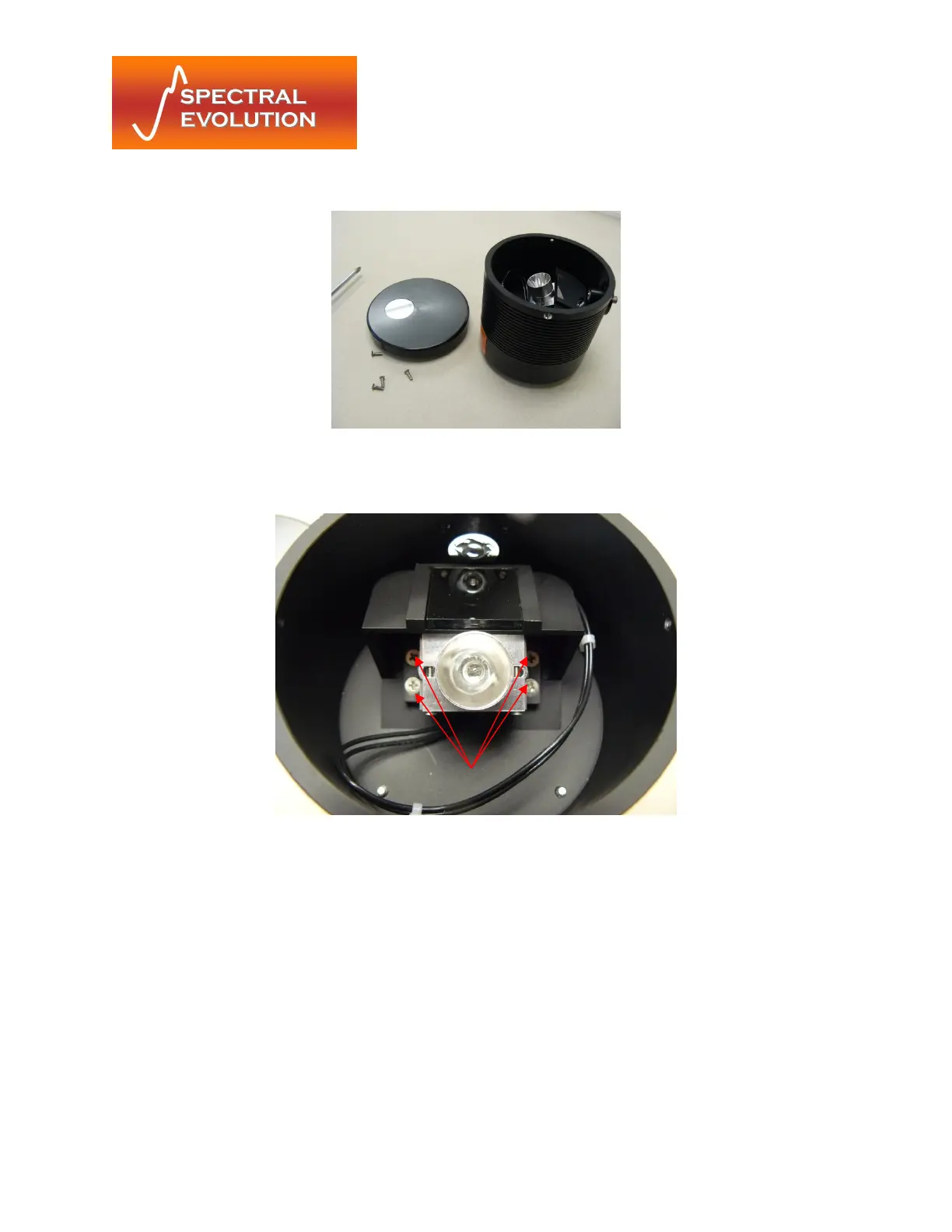3) Undo the four #4-40 screws on the light bulb housing screws and remove the