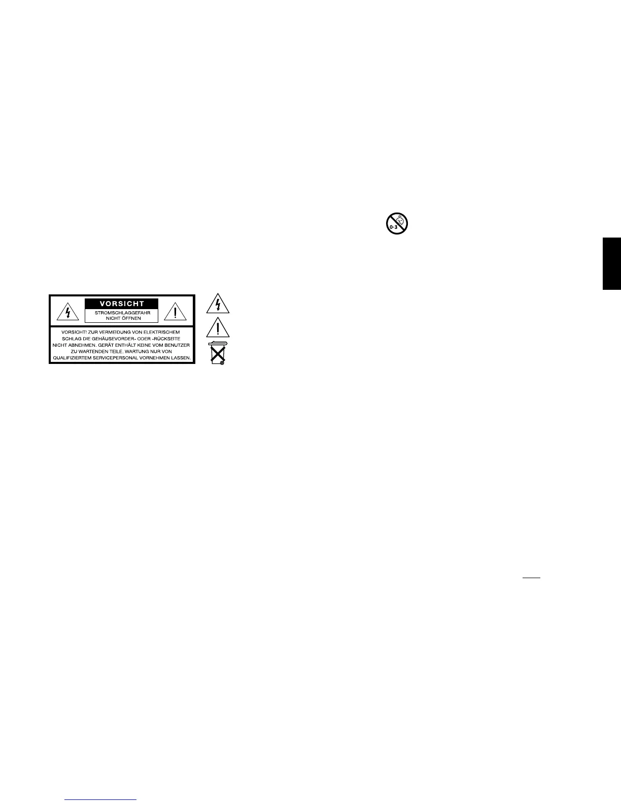 VORSICHT: - Zur Vermeidung eines Stromschlags, das Gehäuse nicht önen. Das Gerät enthält keine Teile, die vom Benutzer