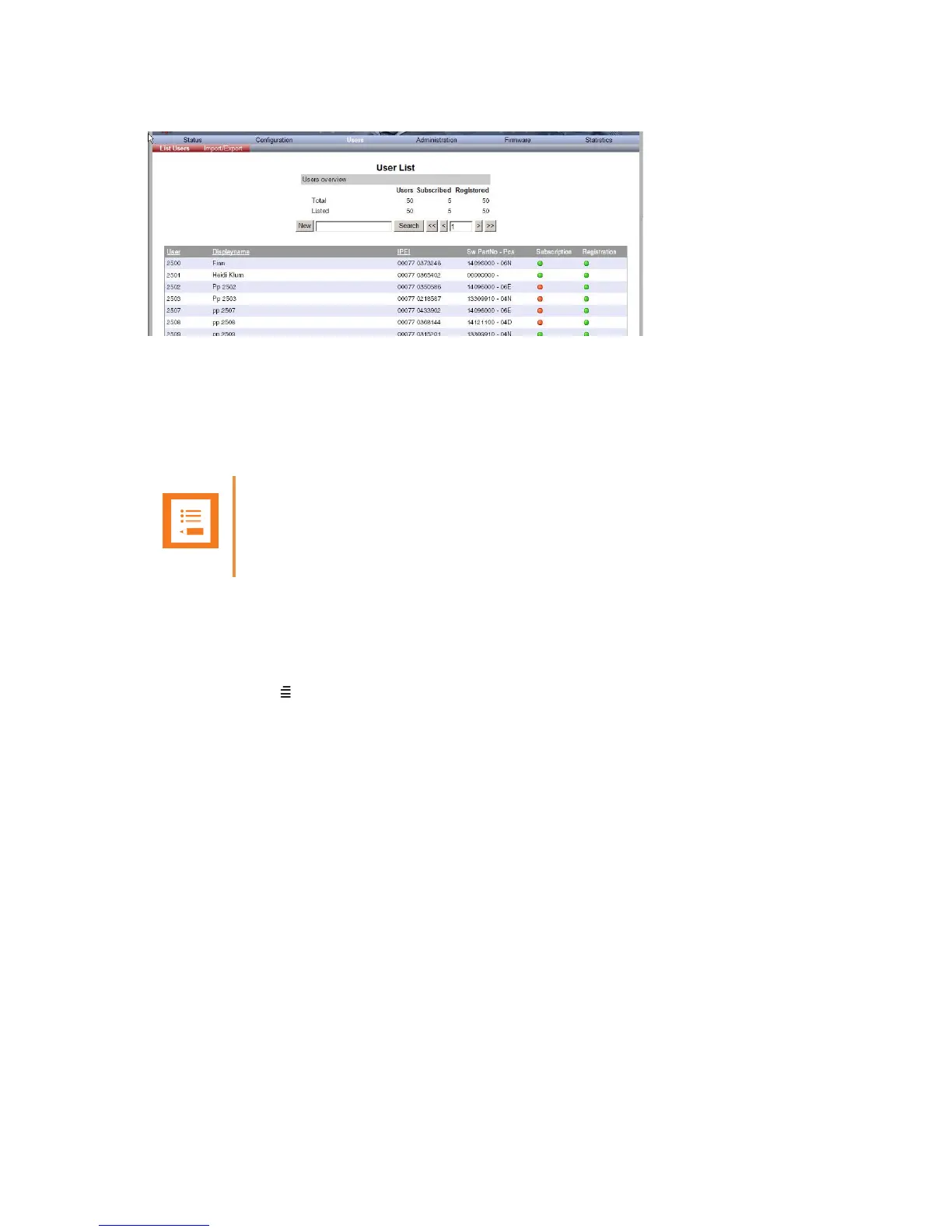 2 Type the beginning of a user, display name or IPEI to search for in the text field, and then