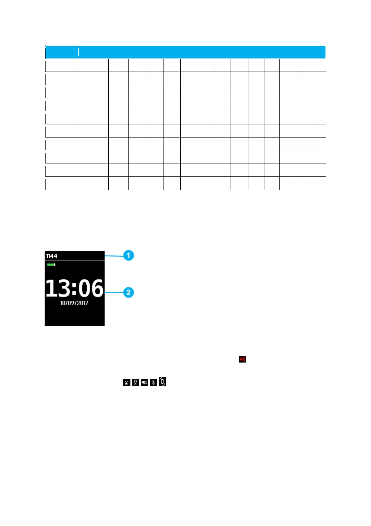 • Display shows standby text, battery status, signal status