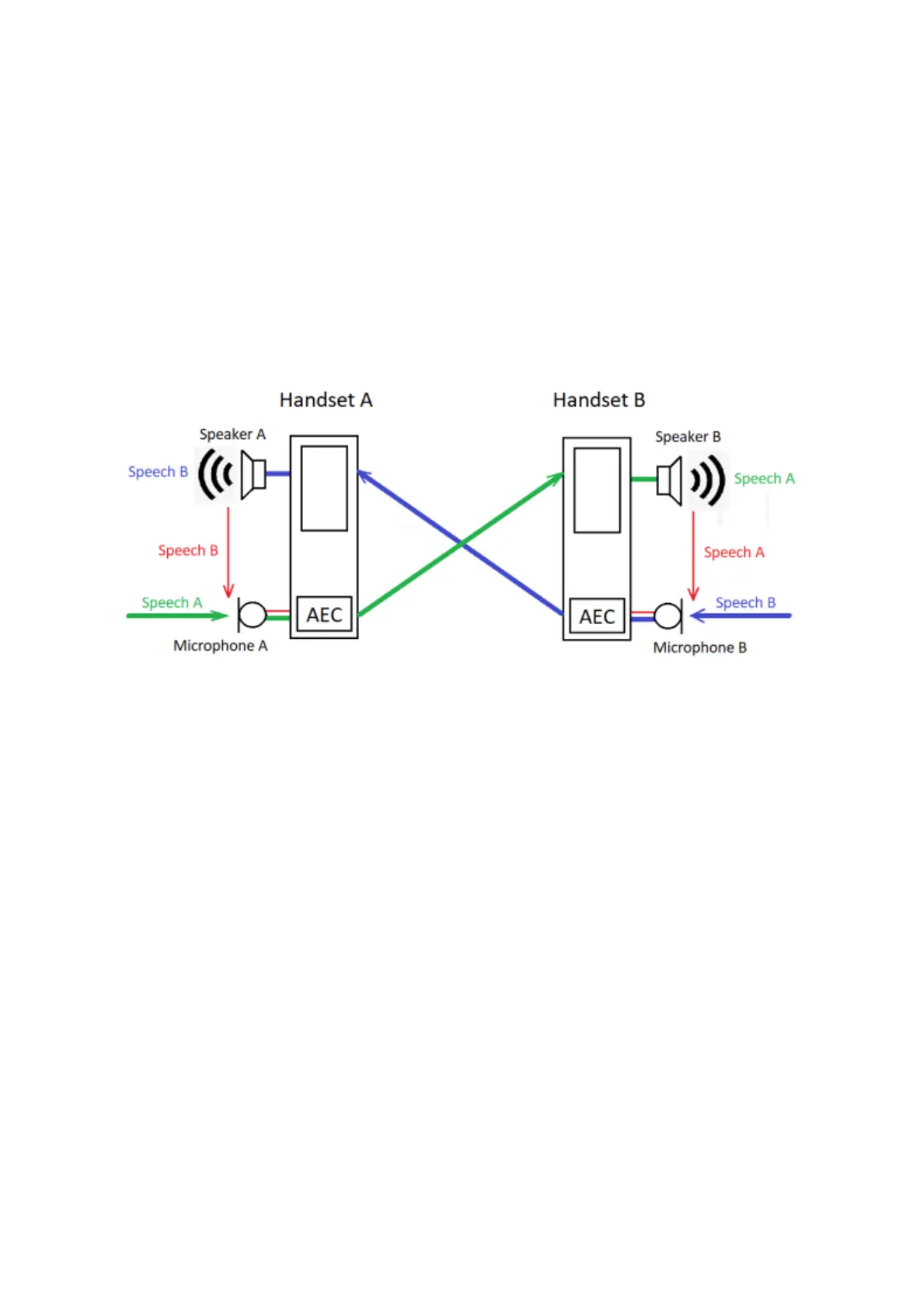 7. The AEC in handset B removes the undesired signal to avoid user A will hear an