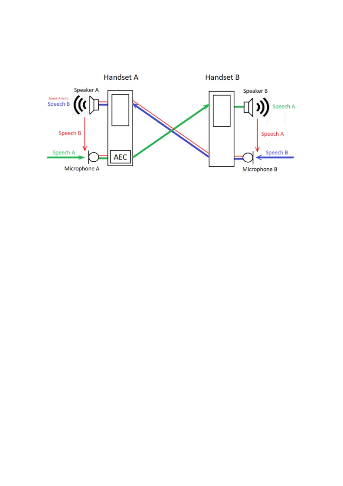 Echo Canceller (AEC) is disabled in handset B, user A will hear echoes of his own speech if