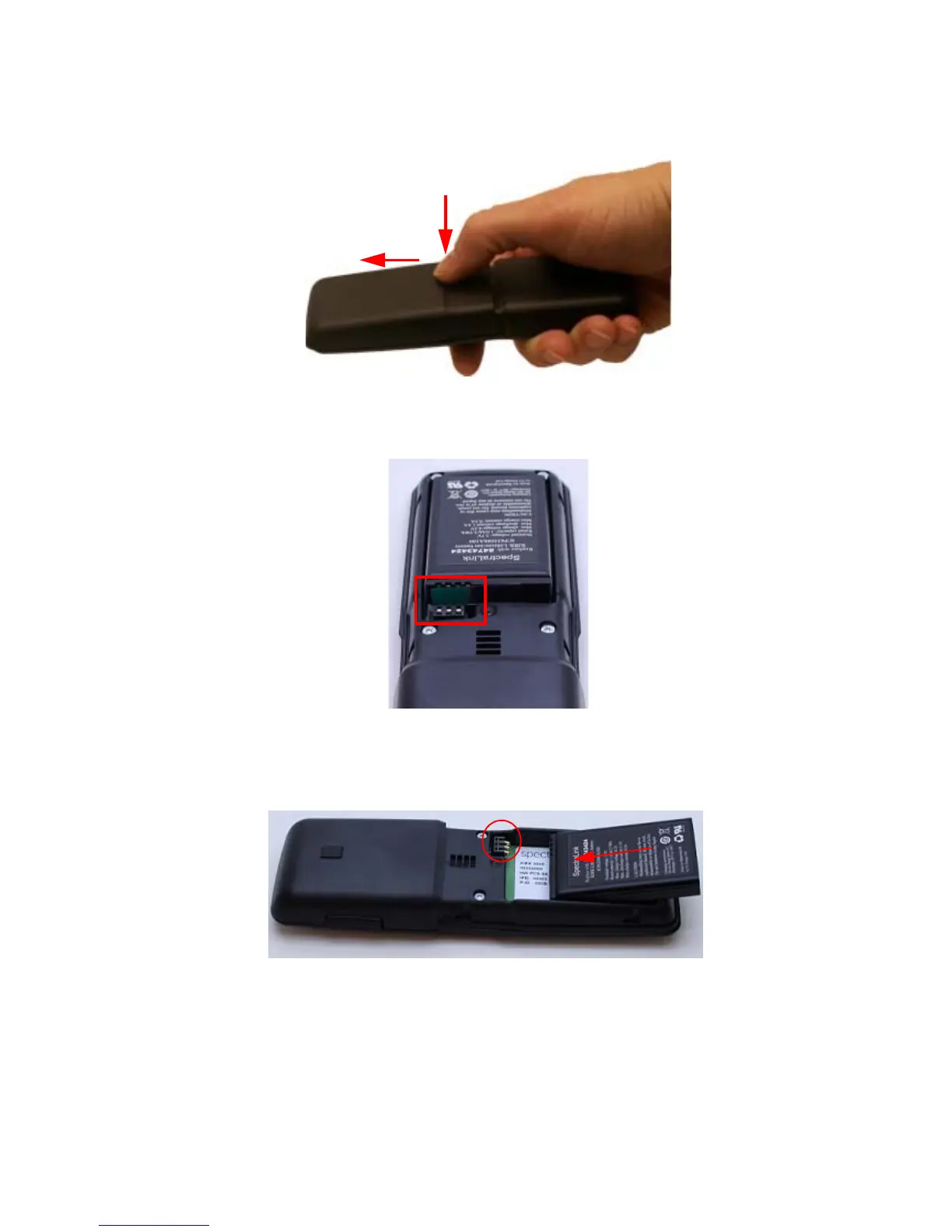 1 Press down the back cover and slide it towards the bottom of the handset.