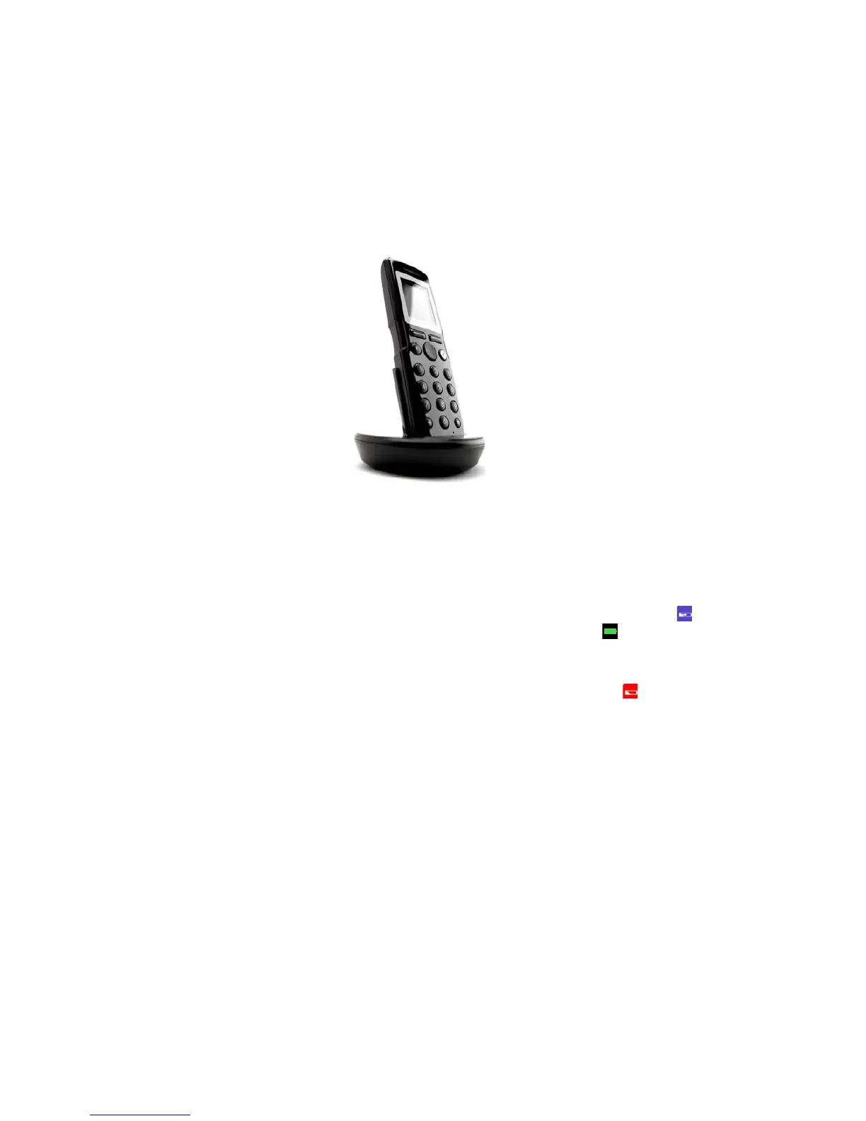fully charged (when handset is removed from charger, the charging icon disappears). The handset