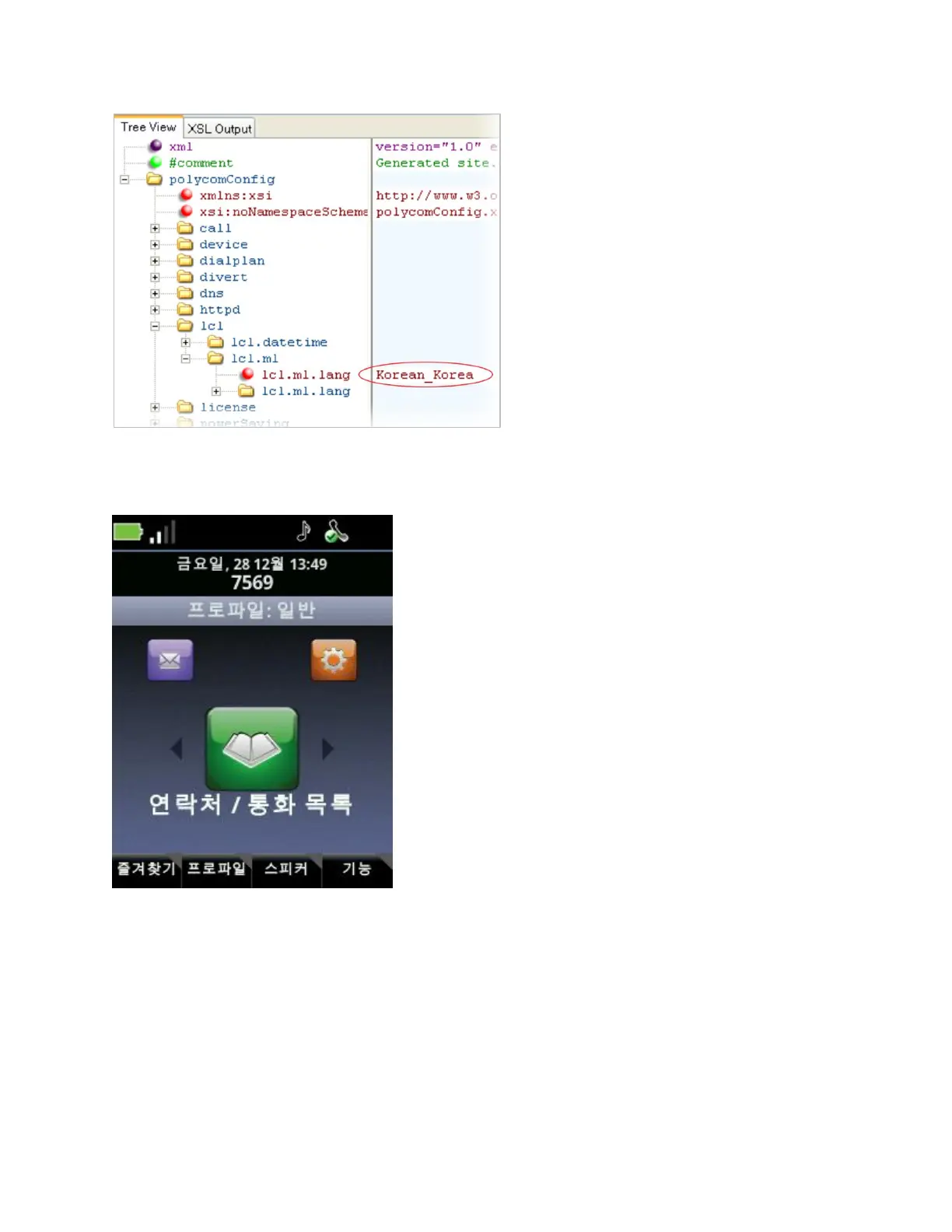 Once configured, the handset will use Korean characters. The language can be changed on the