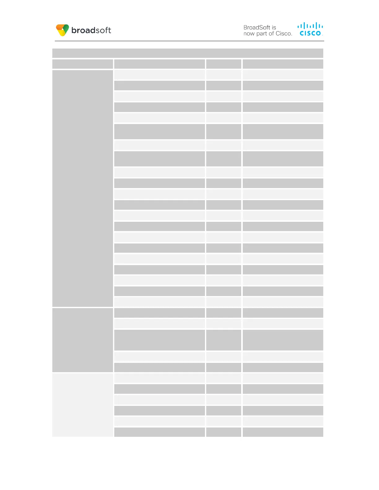 BroadWorks SIP Phone Interoperability Test Plan Support Table
