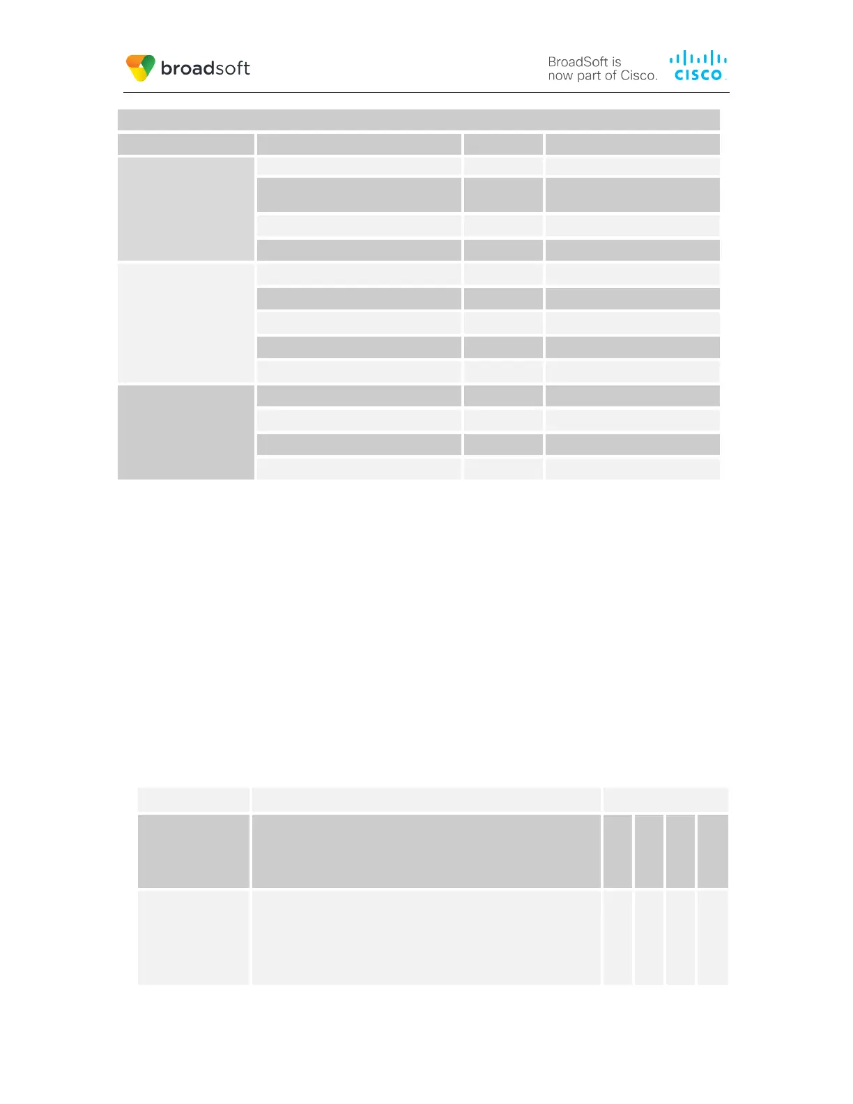 BroadWorks Xtended Services Interface (Xsi) and BroadCloud IM&P Support Table