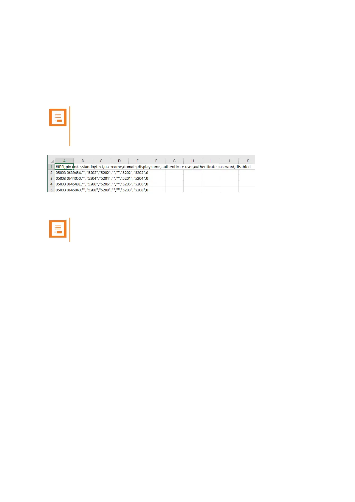 You can import handset registration data in CSV format. To be able to import the data correctly, you