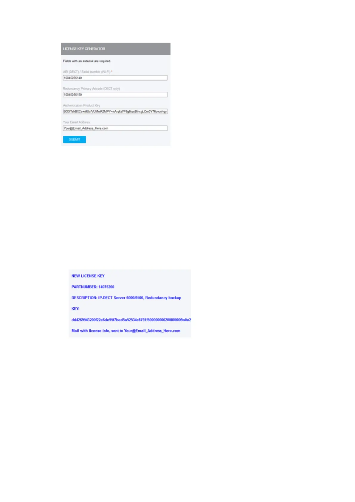 5. Generate the license for the backup Spectralink IP-DECT Server 6500 by doing the following: