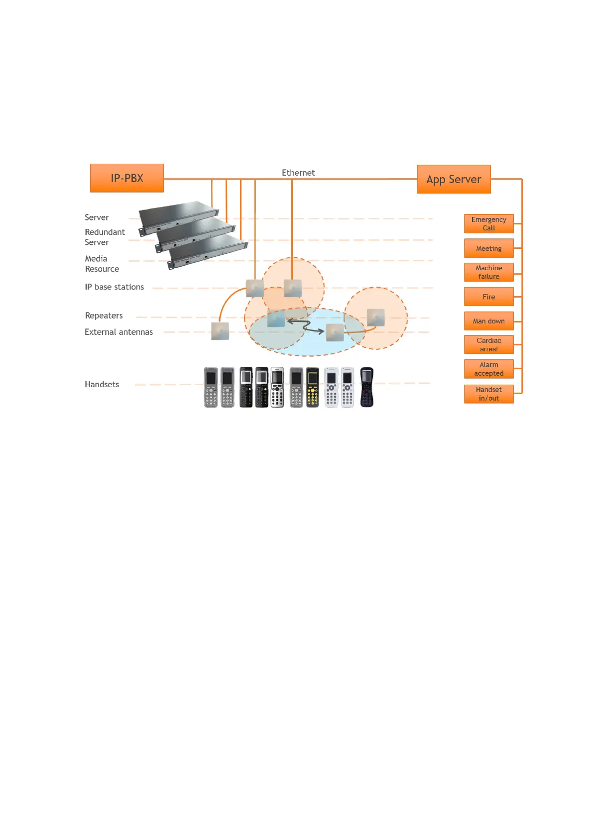 Optional wireless Spectralink DECT Repeaters can be used to extend the coverage of the Spec-