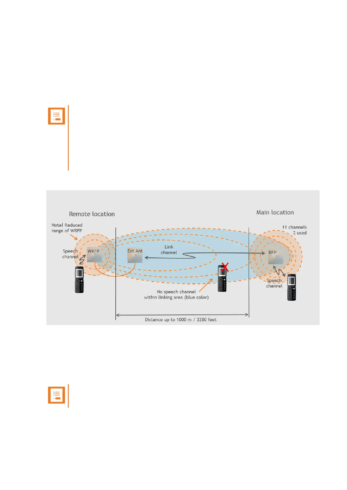 Inside the area named "radio link" there is no radio coverage for handsets.