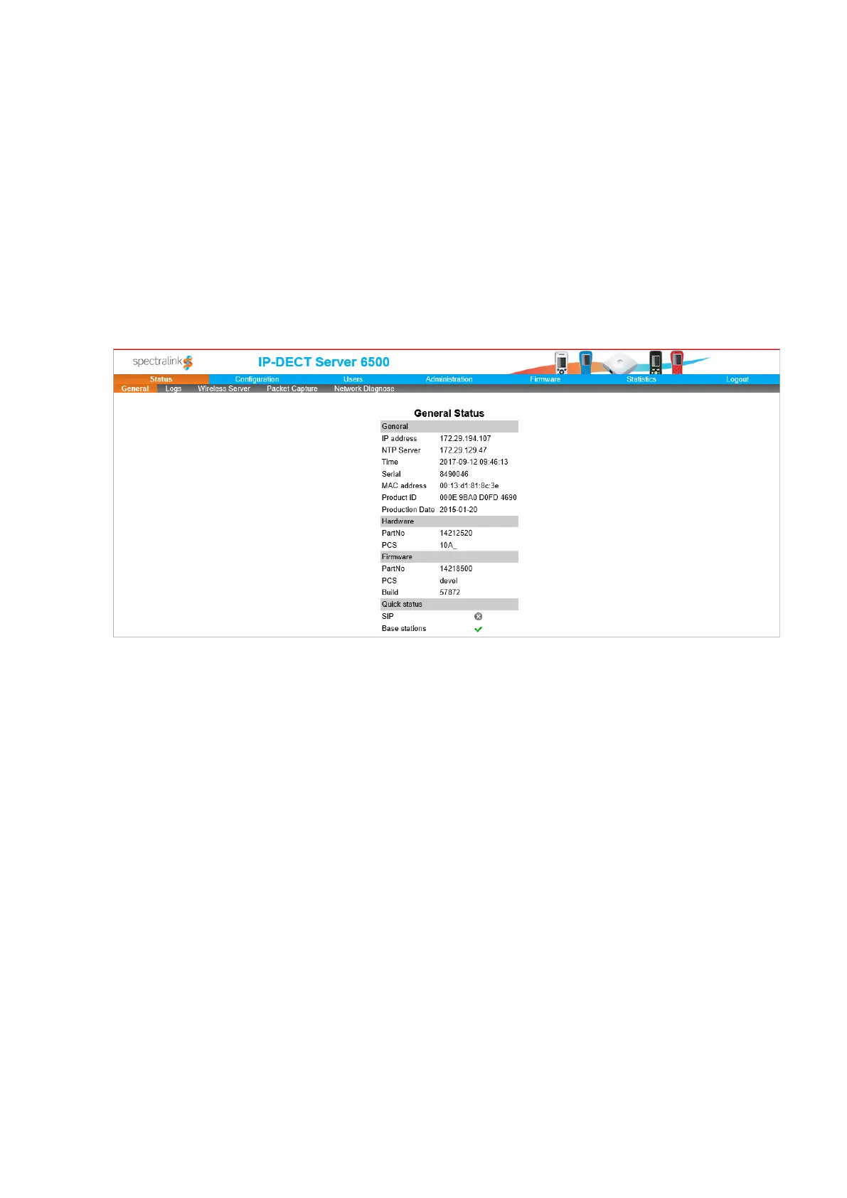 The main page of the web based Administration Page for the Spectralink IP-DECT Server, Spec-